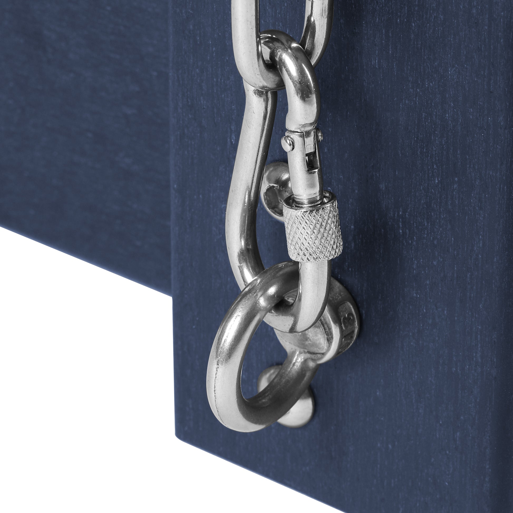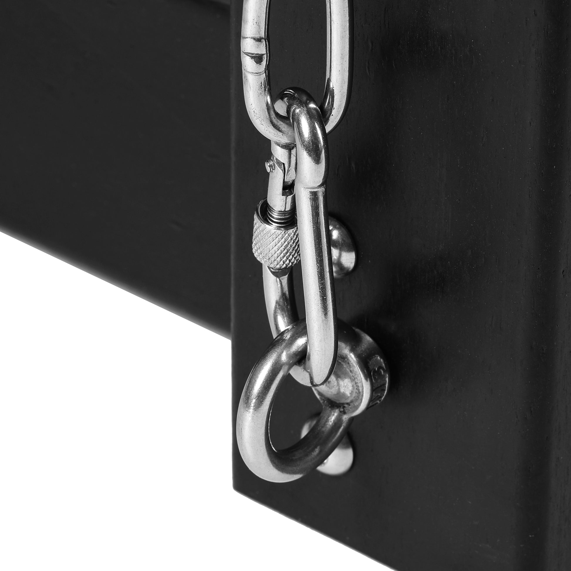 - Designed with safety in mind with our solid stainless steel chains and eyebolt and a twistlock carabiner to keep you re-assured