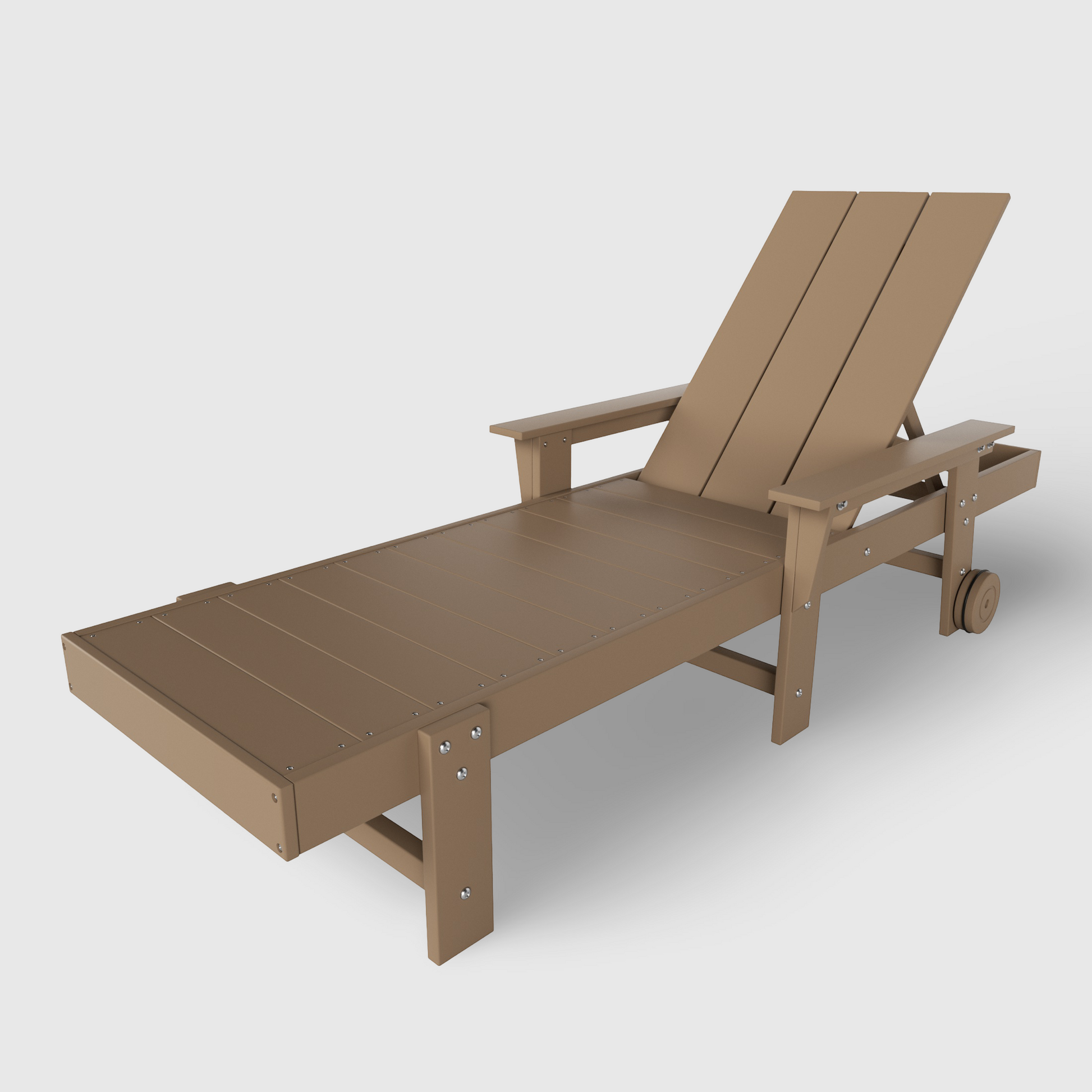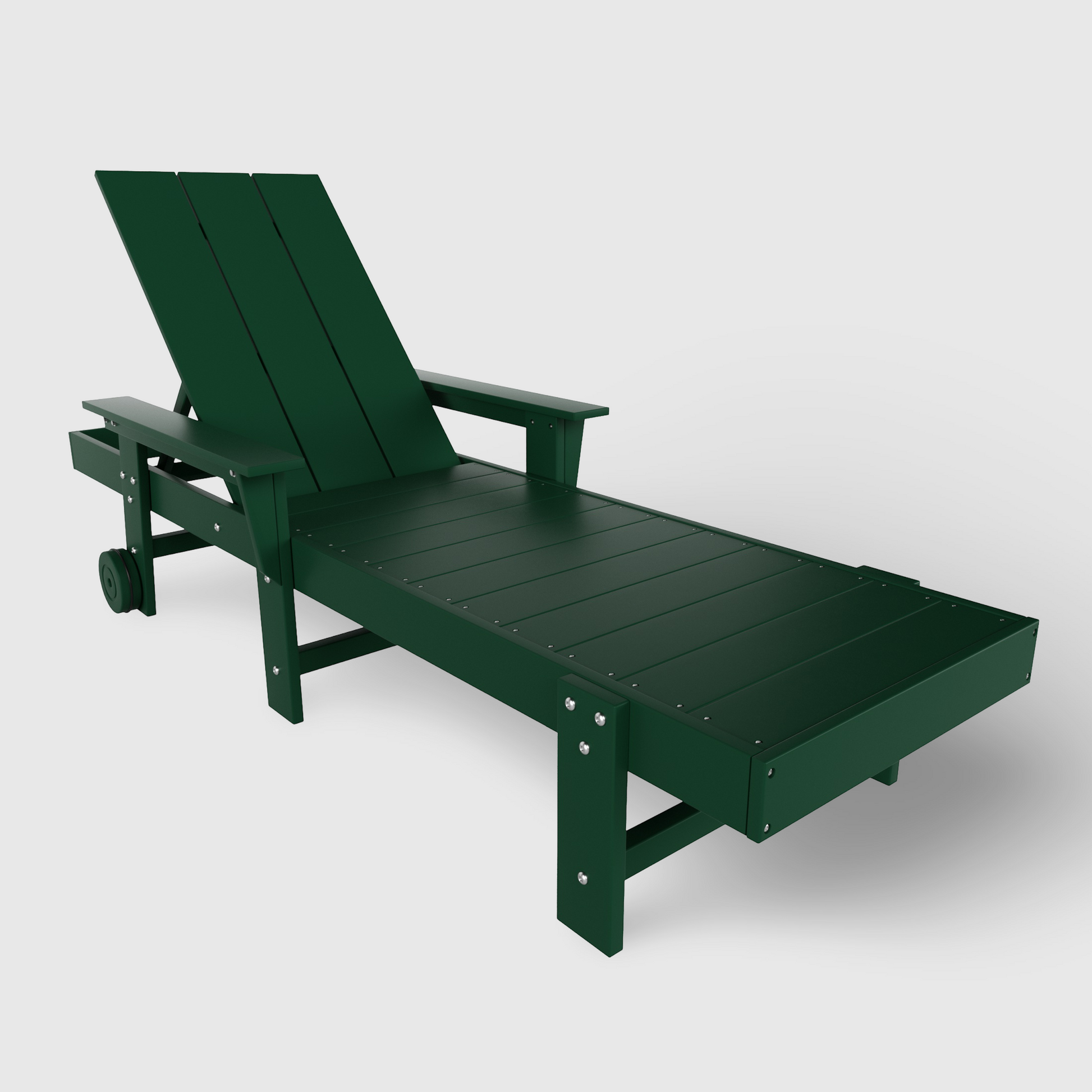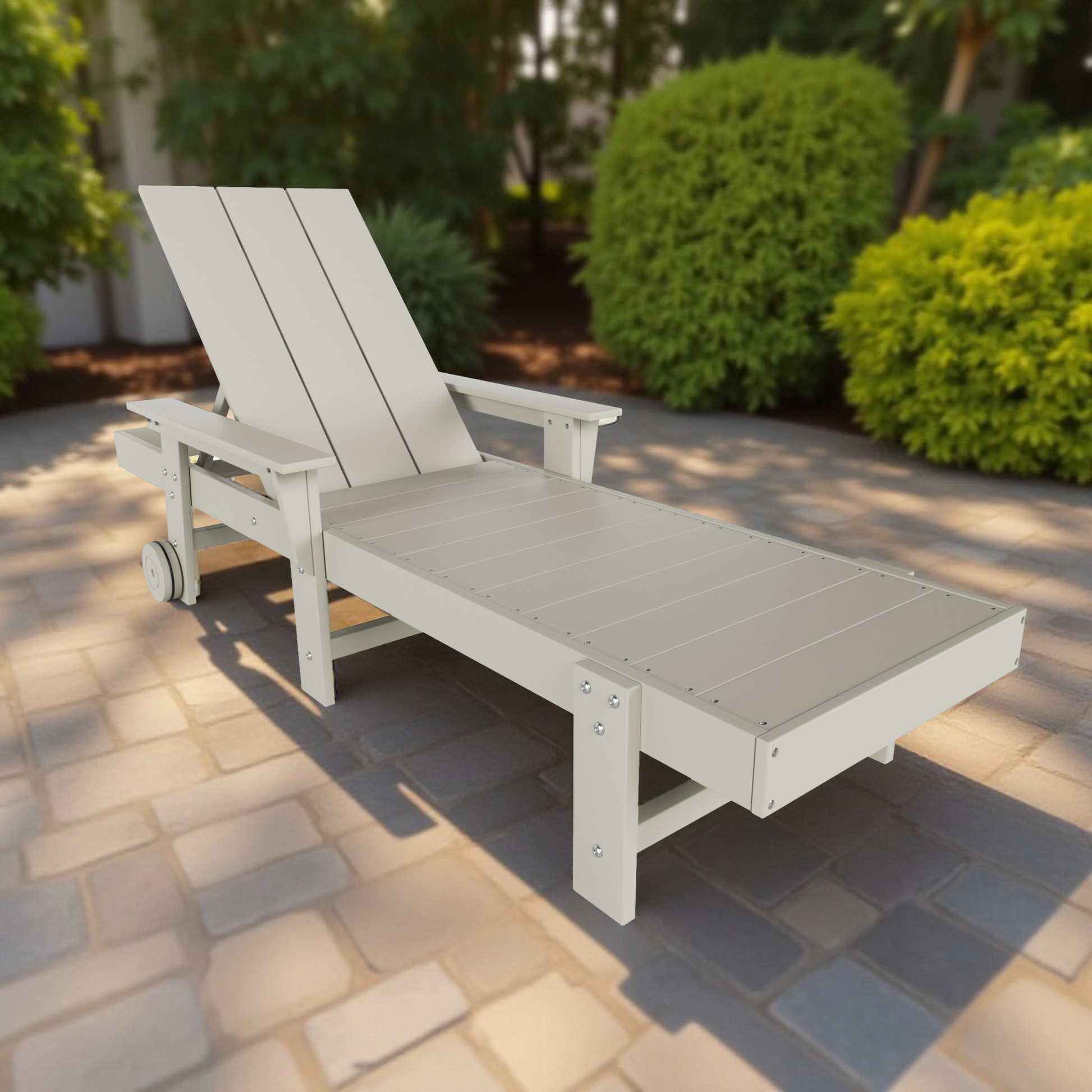 Create a relaxing oasis with this attractive modern chaise lounger. Made out of a durable, eco-friendly HDPE material that is perfect for the outdoors thanks to its weather and UV resistant material that can withstand the harsh outdoor weather. Lay down and relax with the adjustable back that has multiple reclining positions to find that sweet spot for relaxing. No need to struggle to move the lounger around with the helpful wheels. Rest your arms or hold your drinks on the sturdy, wide armrests.