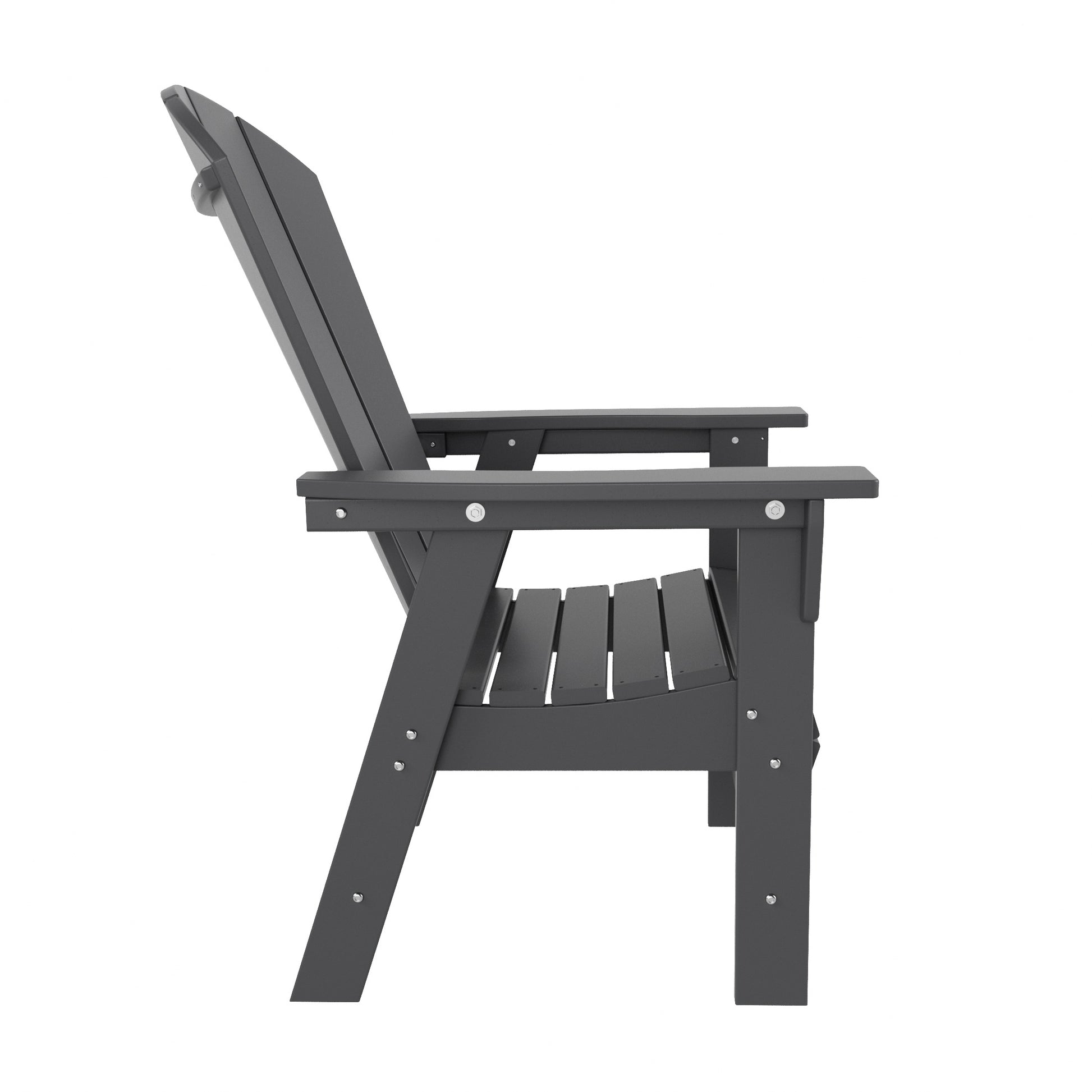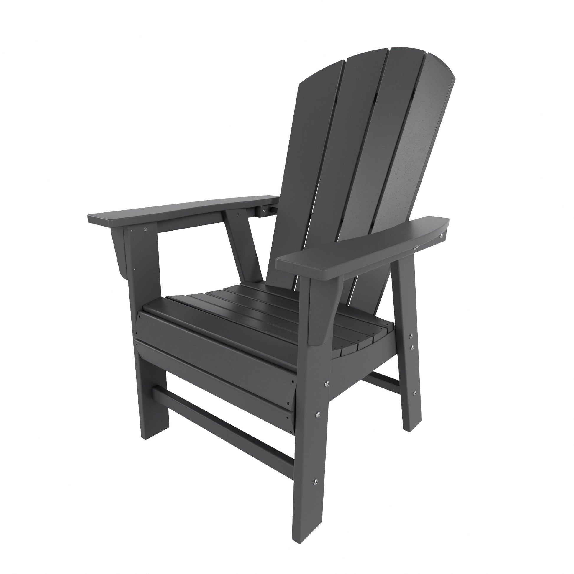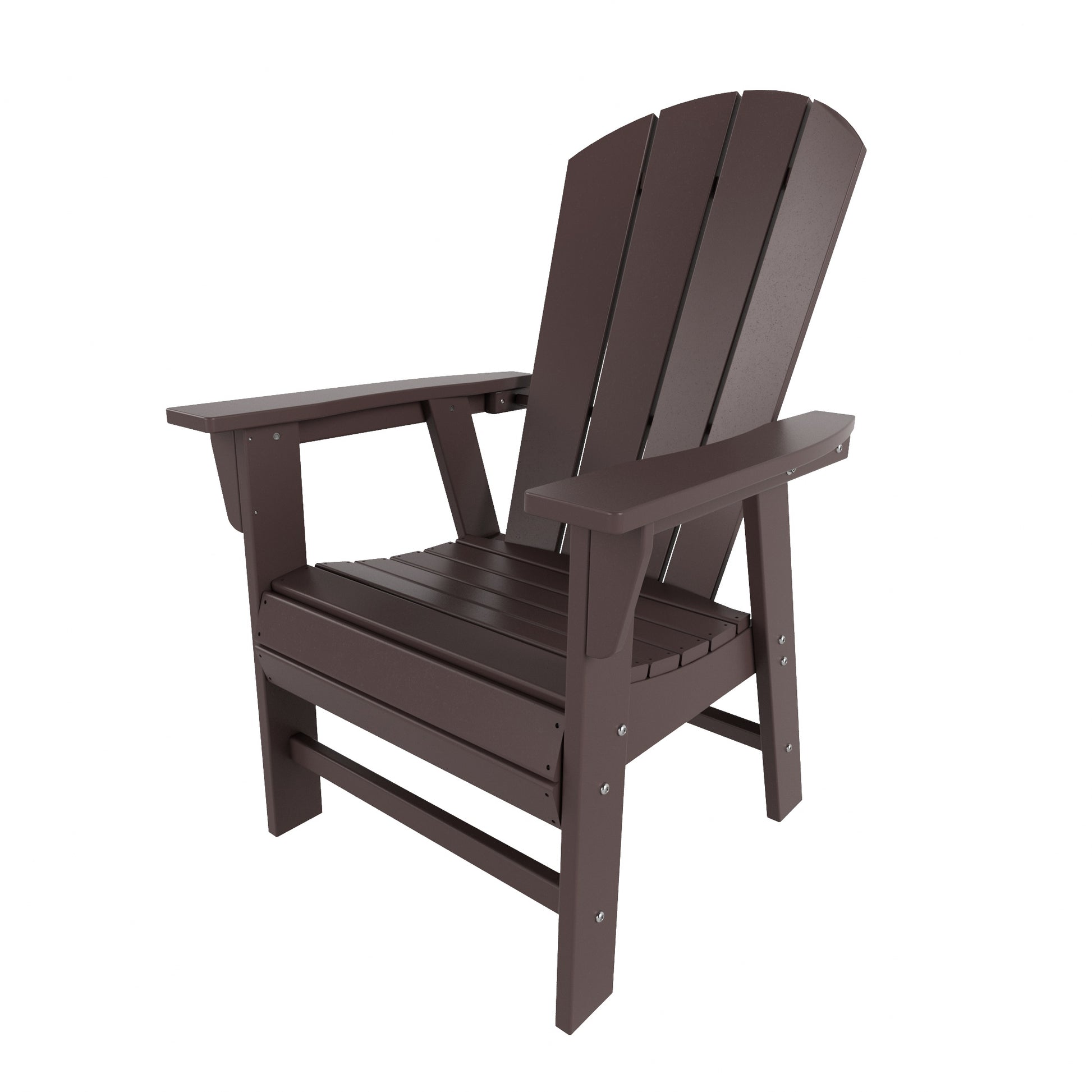 The refined look and relaxed feel of the Casual Adirondack Dining Chair will appeal to your guests when they join you for an outdoor meal on your patio. With a curved back for comfort, this casual all-weather dining chair will bring a touch of laid back beach style to any outdoor space. Add comfort and charm to your patio or deck space with this dining chair.