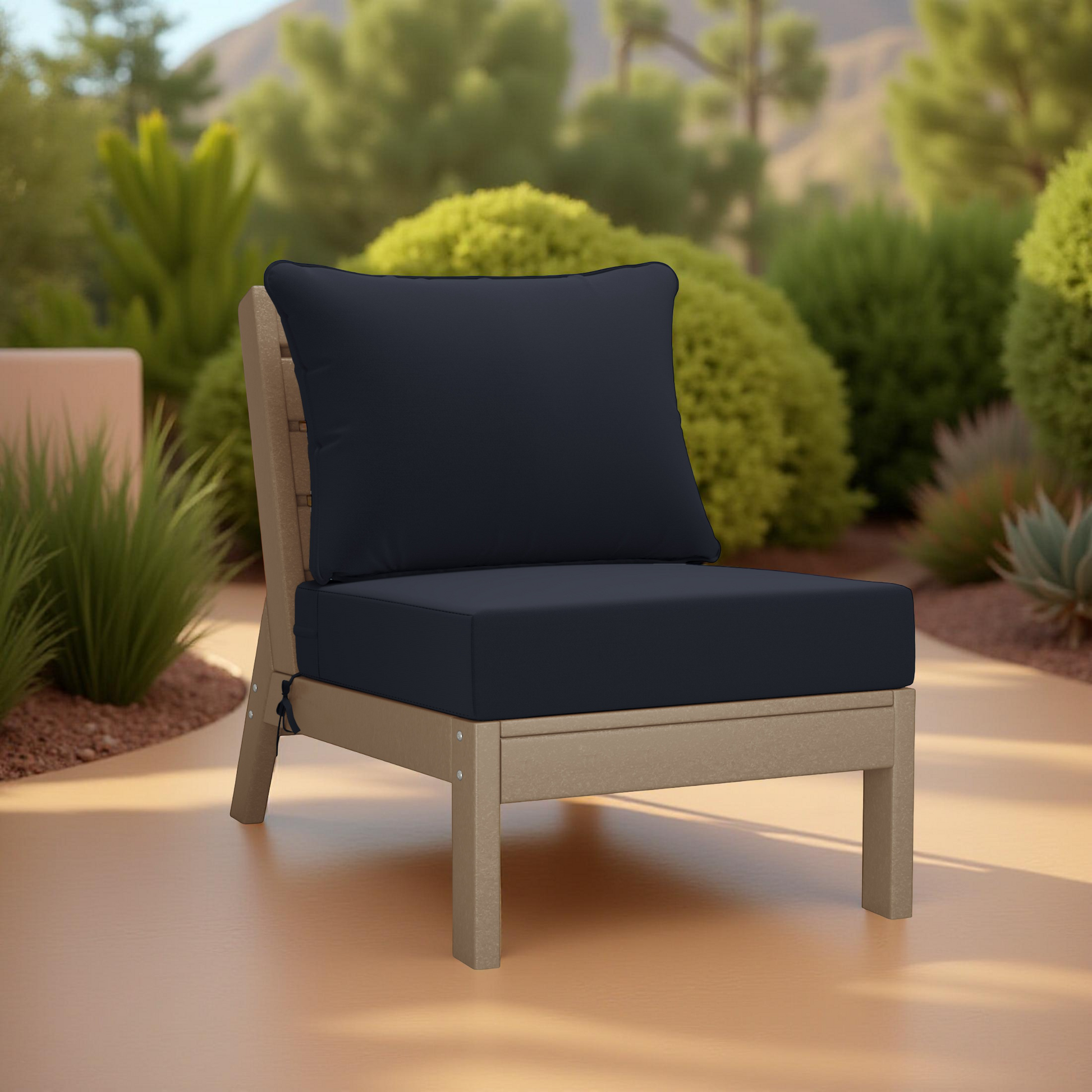 Unwind in style with this deep seating armless patio chair, the perfect addition to your outdoor lounge or modular seating setup. Crafted from thick, high-quality HDPE material, this chair is built to last with UV-, fade-, and weather-resistant durability, ideal for patios, poolside decks, or backyard retreats.