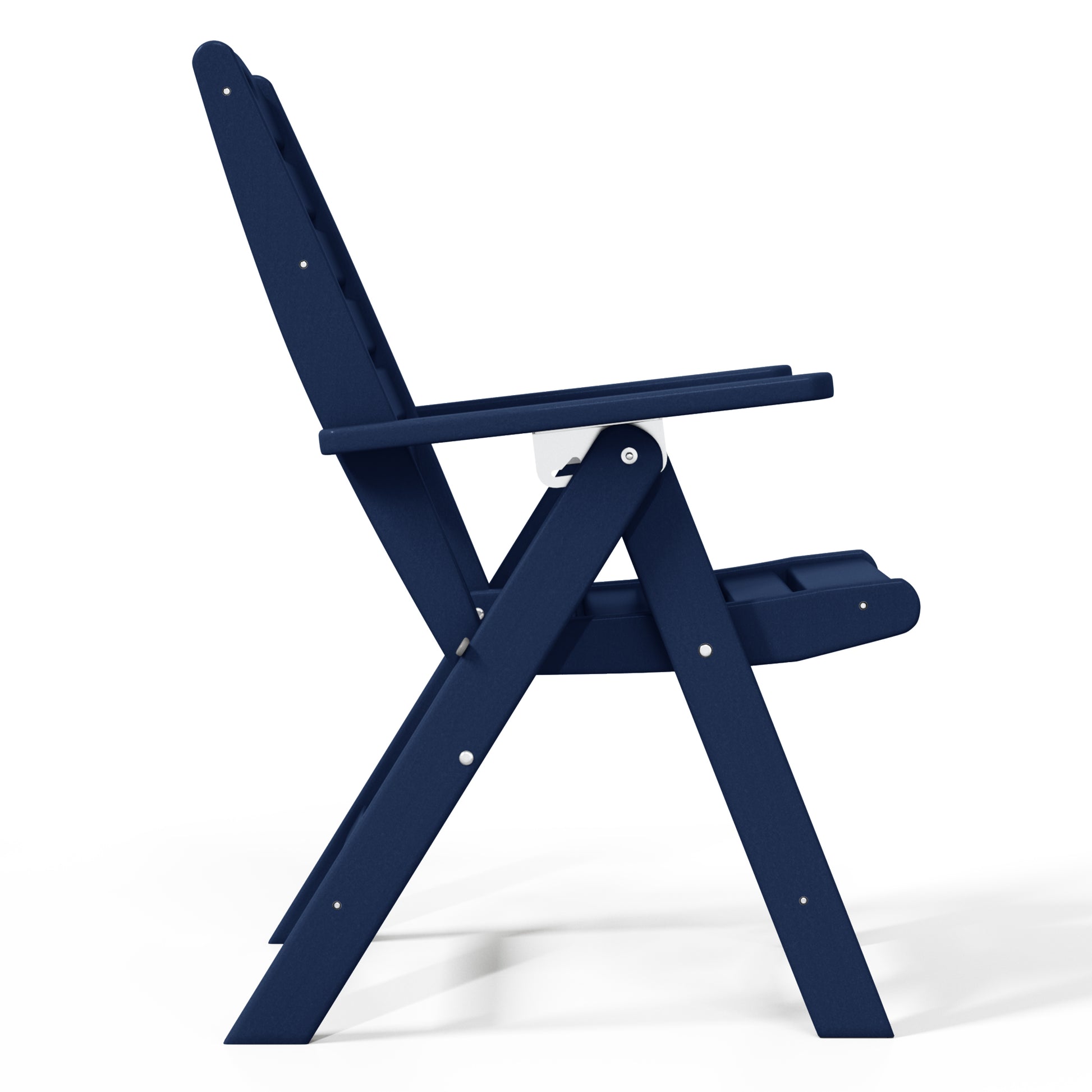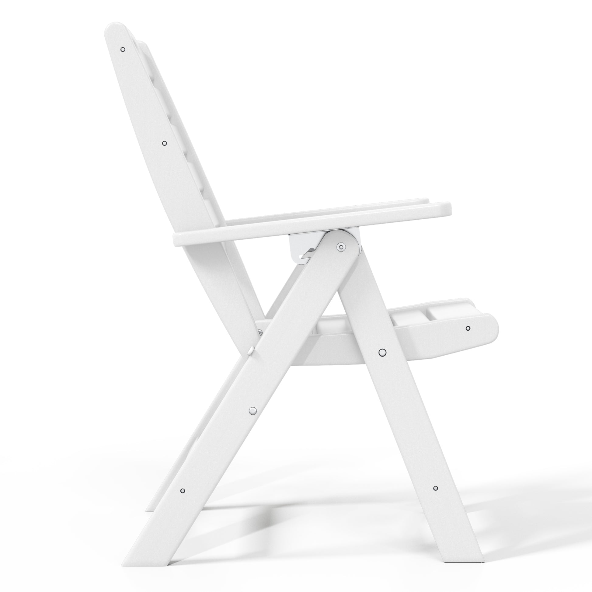 Sit down for a nice meal and relax afterward with our enchanting Set of Two Patio Folding High back Dining Chairs. Crafted with durable, all-weather HDPE material, it is resilient to outdoor conditions with UV and fade resistance, making it the ideal material for protection against the elements. Lay back after an amazing meal with the reclinable backrest, which has four different positions, adding overall comfort and turning this outdoor dining chair into the perfect camping chair to relax" Once mealtime is over, simply pick up the chair and fold it for easy storage, making cleanup a breeze.