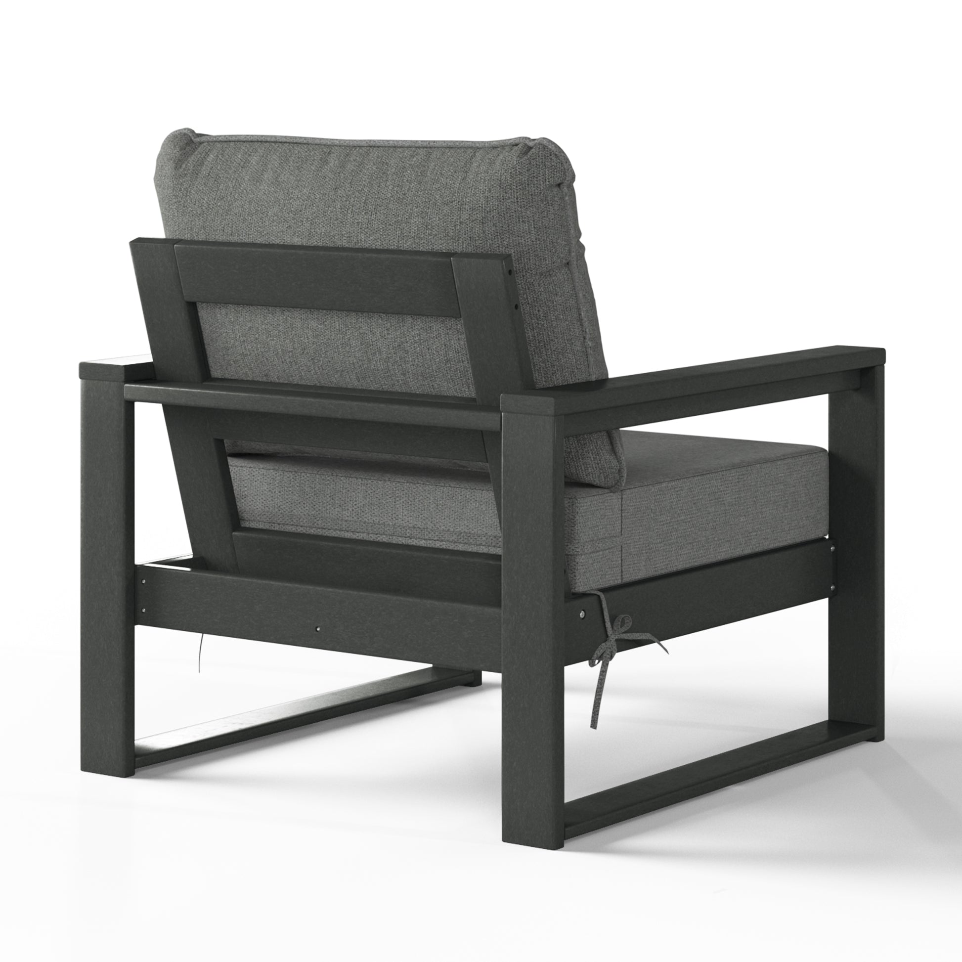 Our outdoor deep seating club chair with cushions seamlessly complements any existing outdoor furniture ensemble when combined with the comfortable outdoor patio cushion. Featuring a wide seat, comfortable armrests, and thick plush foam-filled seats, it provides unparalleled comfort for relaxation. Designed for durability with a U-shaped leg frame that prevents wobbling and creates a more rigid and stable seat. Sit and relax on the high-resilience foam that provides a firm yet soft seat, ensuring plenty of comfort for all-day use. Keep your set protected with the UV, fade-resistant, and water-repellent cushions, which are sure to keep your set looking great season after season and lets water bead right off. Whether you're unwinding on your deck, porch, or any outdoor retreat, this chair is the perfect companion.