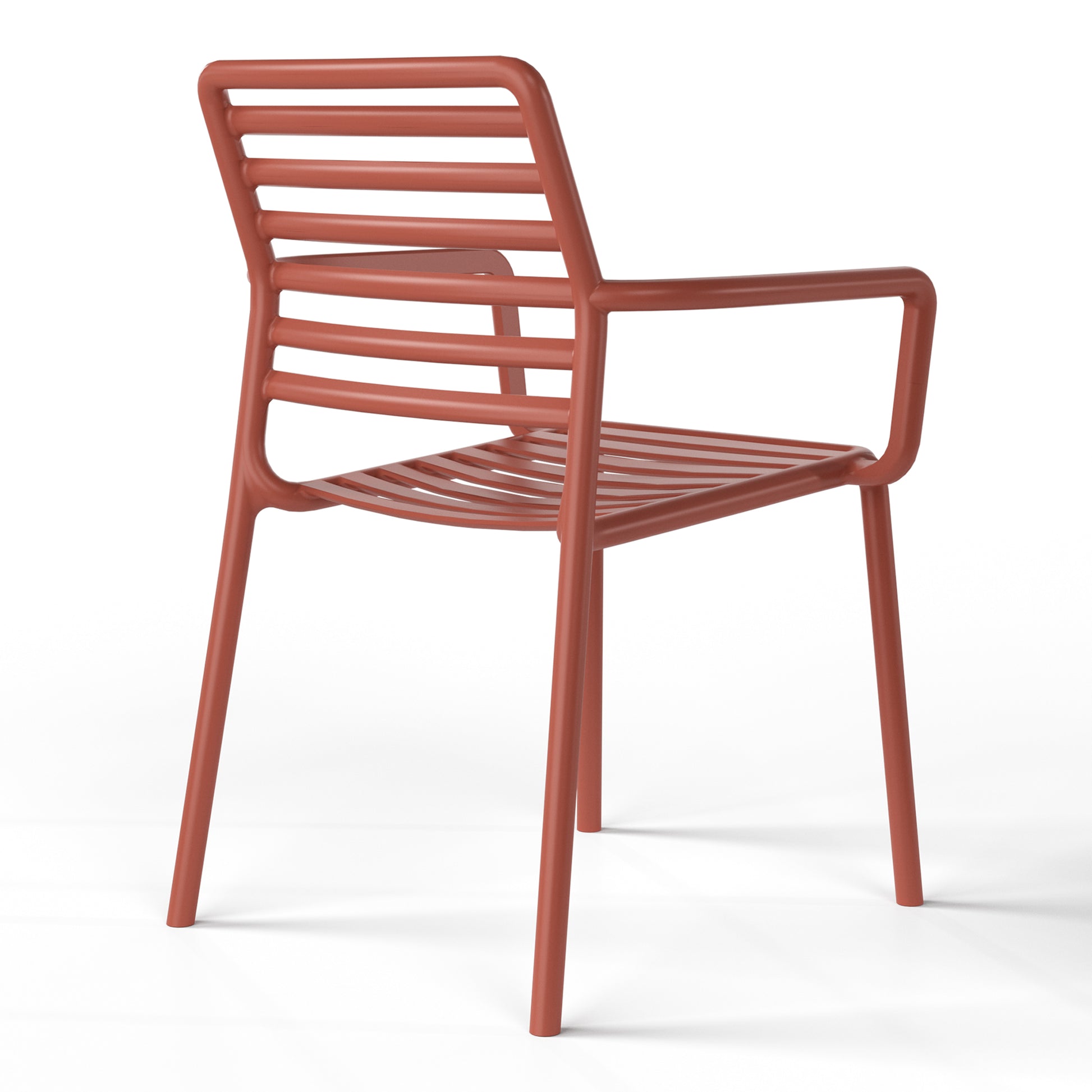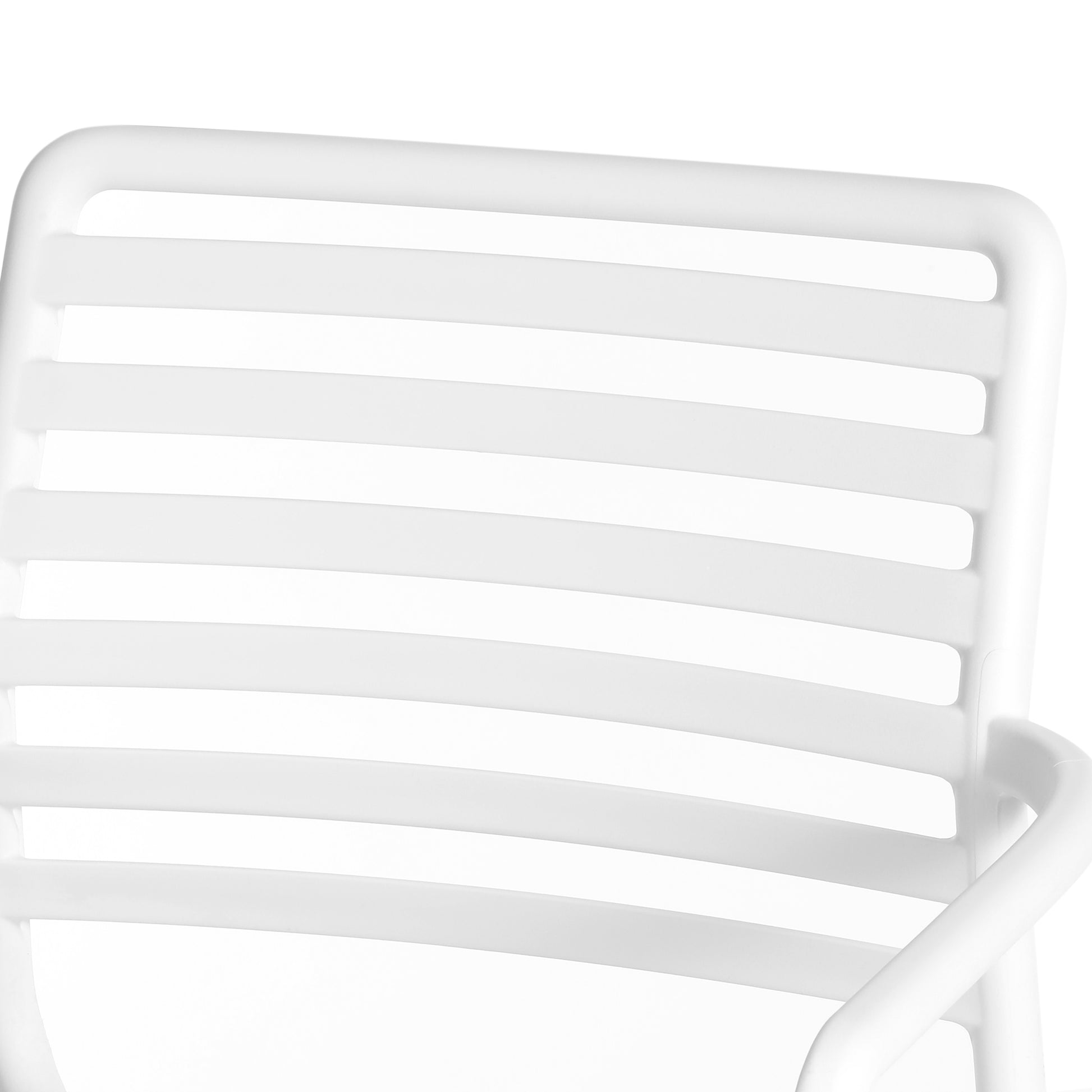 Appealing style that is sure to give your balcony or outdoor terrace some added charm with this set of four charming outdoor dining arm chairs. Crafted from durable, all-weather PP resin, prepared to withstand the elements while retaining their vibrant color year-round thanks to their UV and fade-resistant properties. Lightweight and simple to move, they are perfect for creating a flexible dining area on even the smallest balconies or patios. Designed with comfort in mind, a ventilated backrest keeps you cool on warm summer evenings with the slatted seats to help provide proper water drainage and prevent water puddling on the seat. And when not in use, they stack neatly for easy storage.