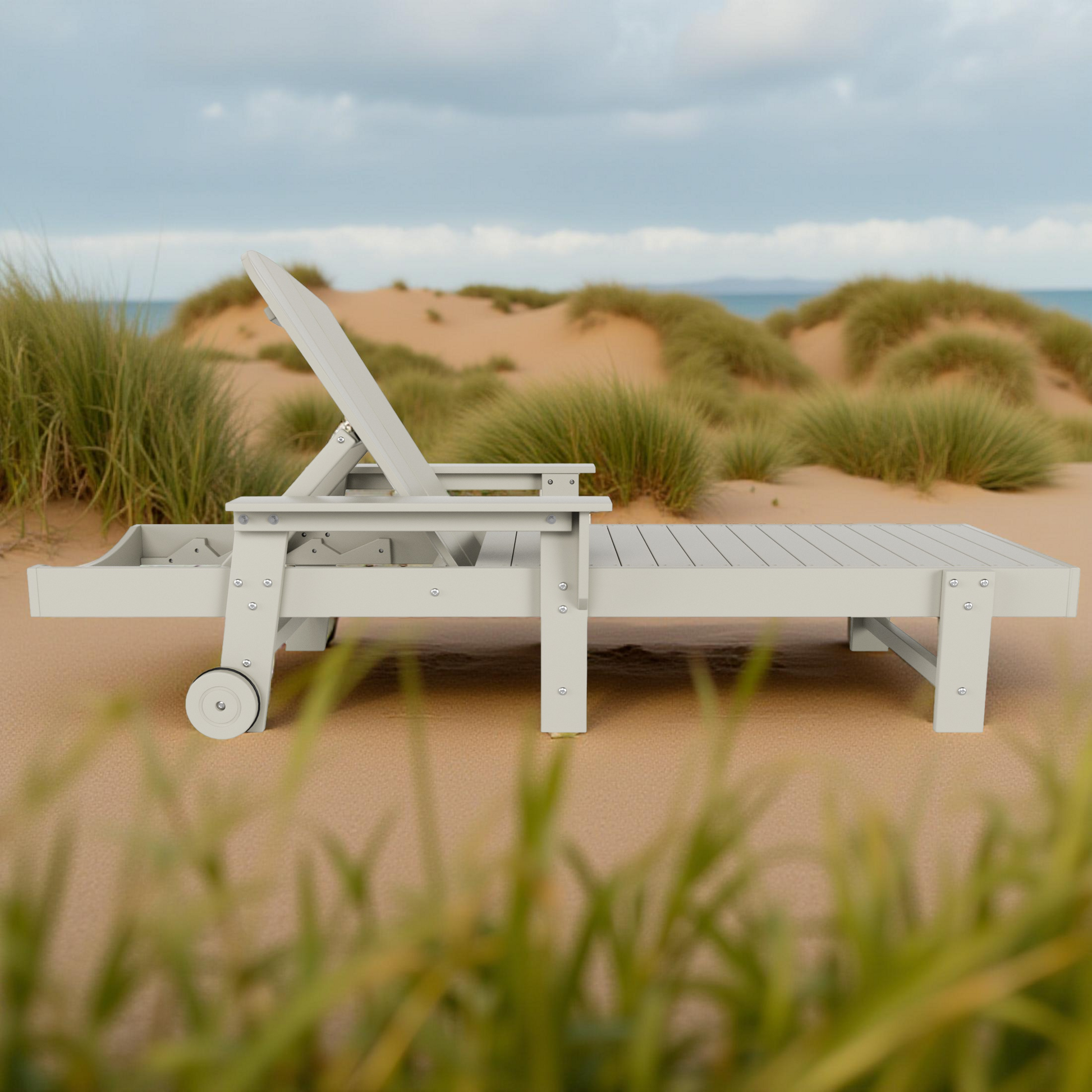 - Wheels for easy movement of the lounger
