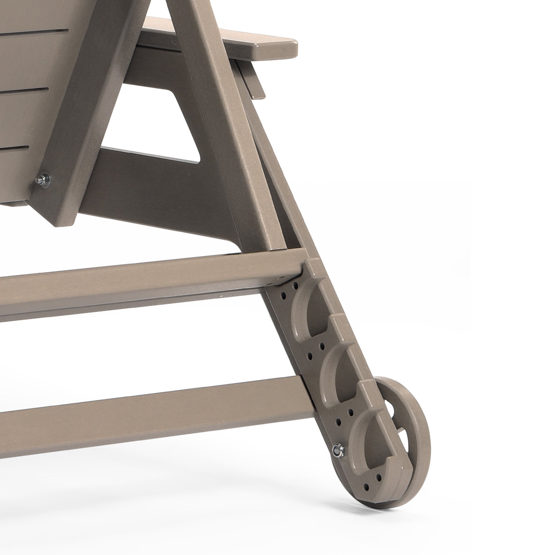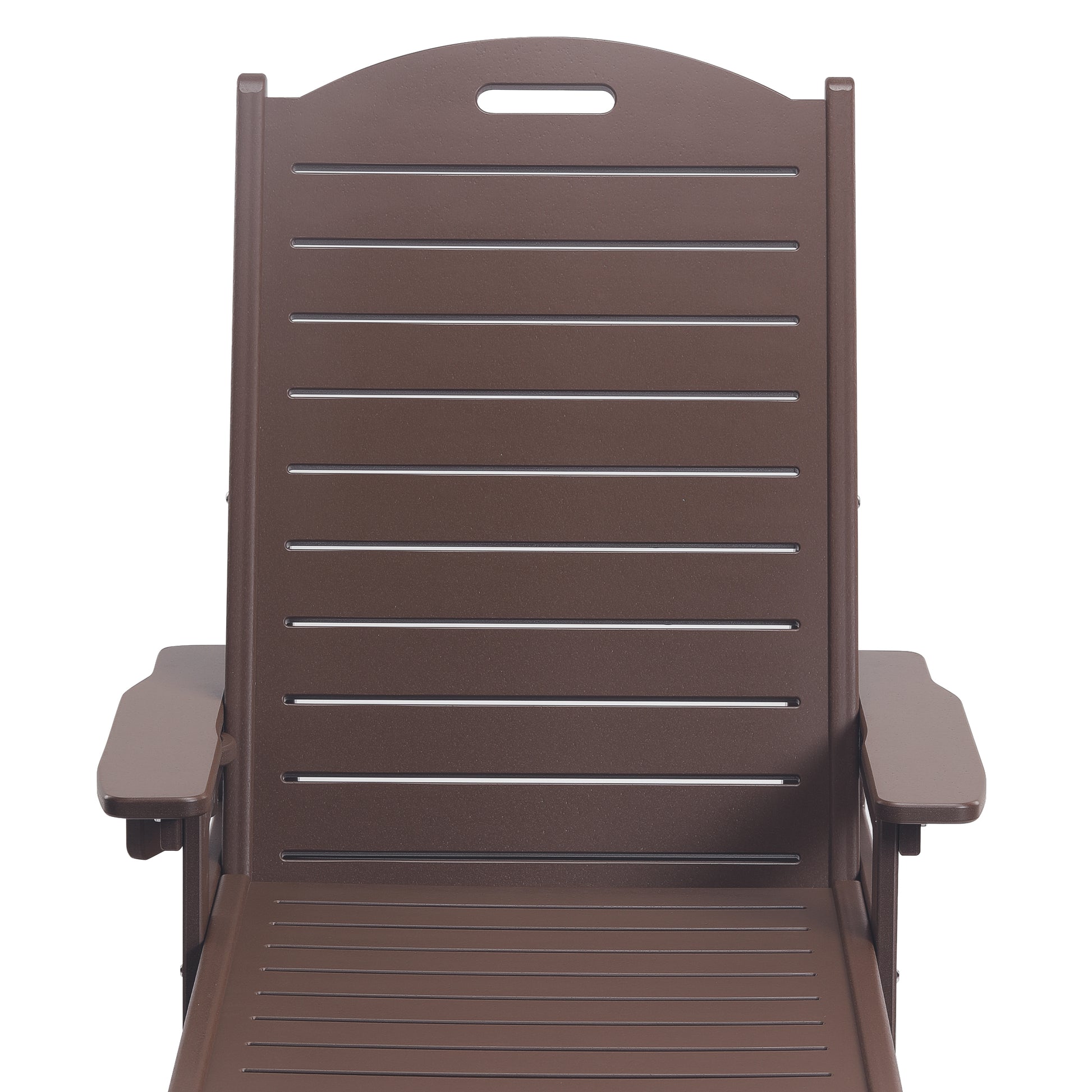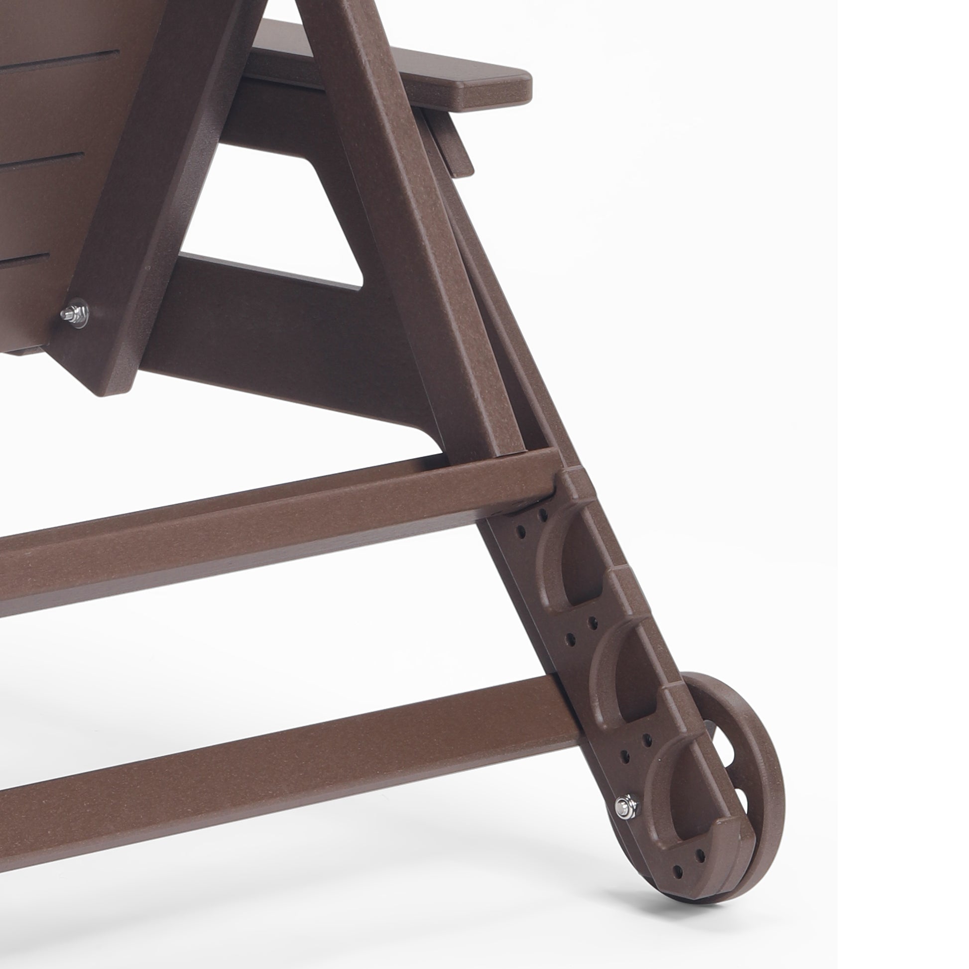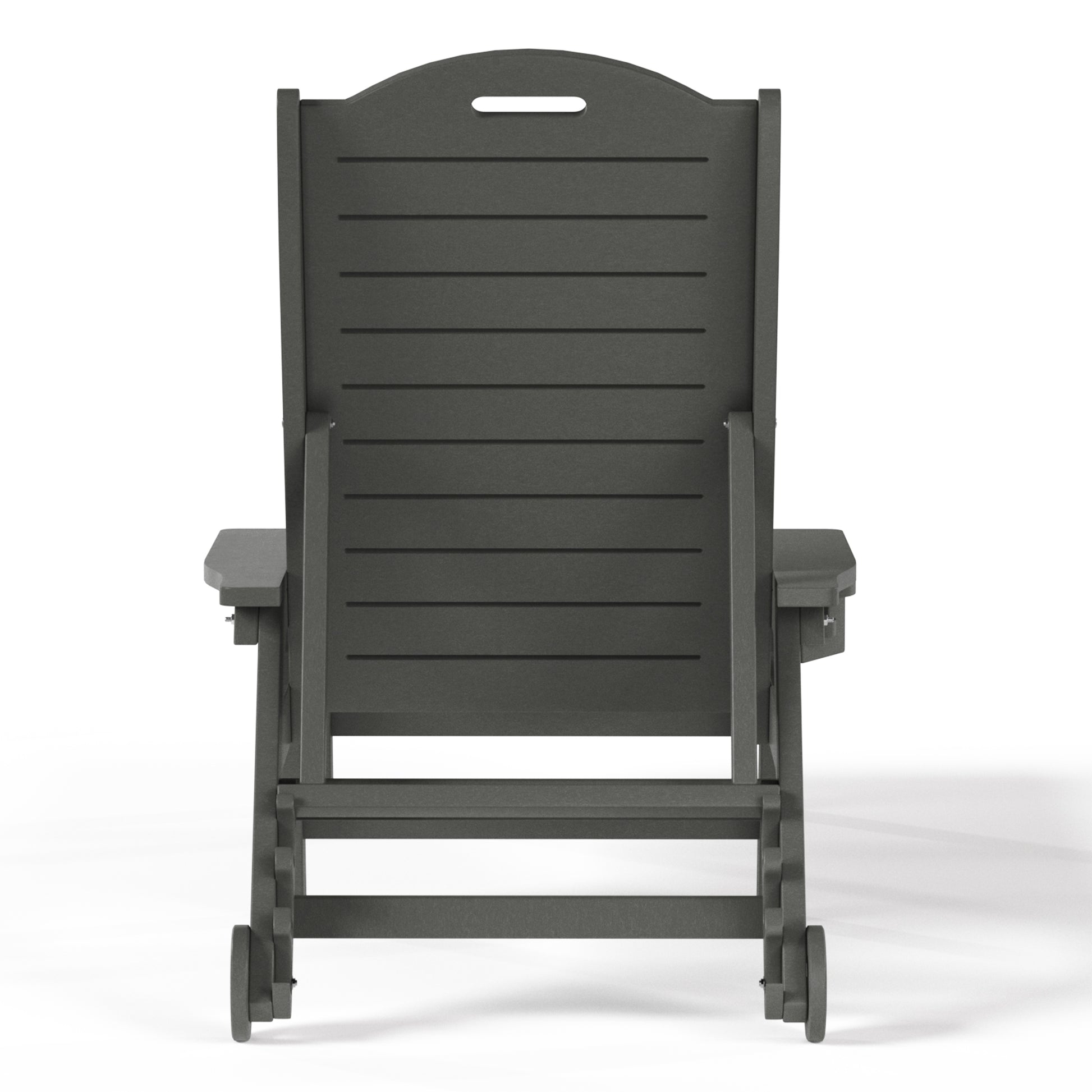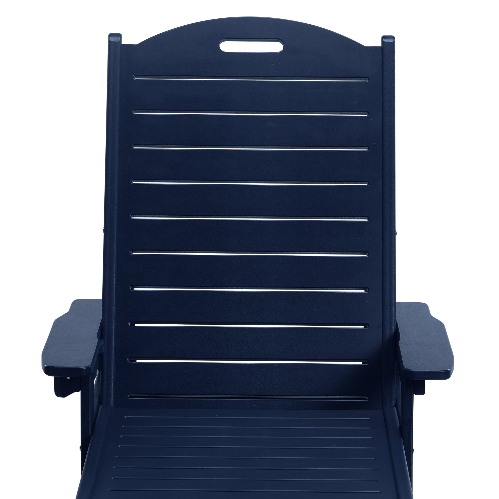 Relax in lasting comfort with our Outdoor HDPE Patio Chaise Lounge, built for durability and style by the poolside. Made from premium HDPE, this outdoor chaise lounge chair is fade-resistant and designed to withstand the elements while keeping its rich color season after season. The 5-position adjustable backrest, including a fully flat option, lets you find your perfect angle for reading, lounging, or sunbathing. A convenient 3" cup holder fits most tumblers and cups, keeping refreshments close at hand. Easy-roll rear wheels allow effortless movement, whether by the pool, patio, or garden. This sleek patio lounger blends comfort and functionality, offering the ideal balance of modern design and weather-resistant performance. Perfect for any outdoor lounge, deck, or backyard retreat, this patio chaise lounge is a durable, low-maintenance essential that elevates your space with timeless appeal.