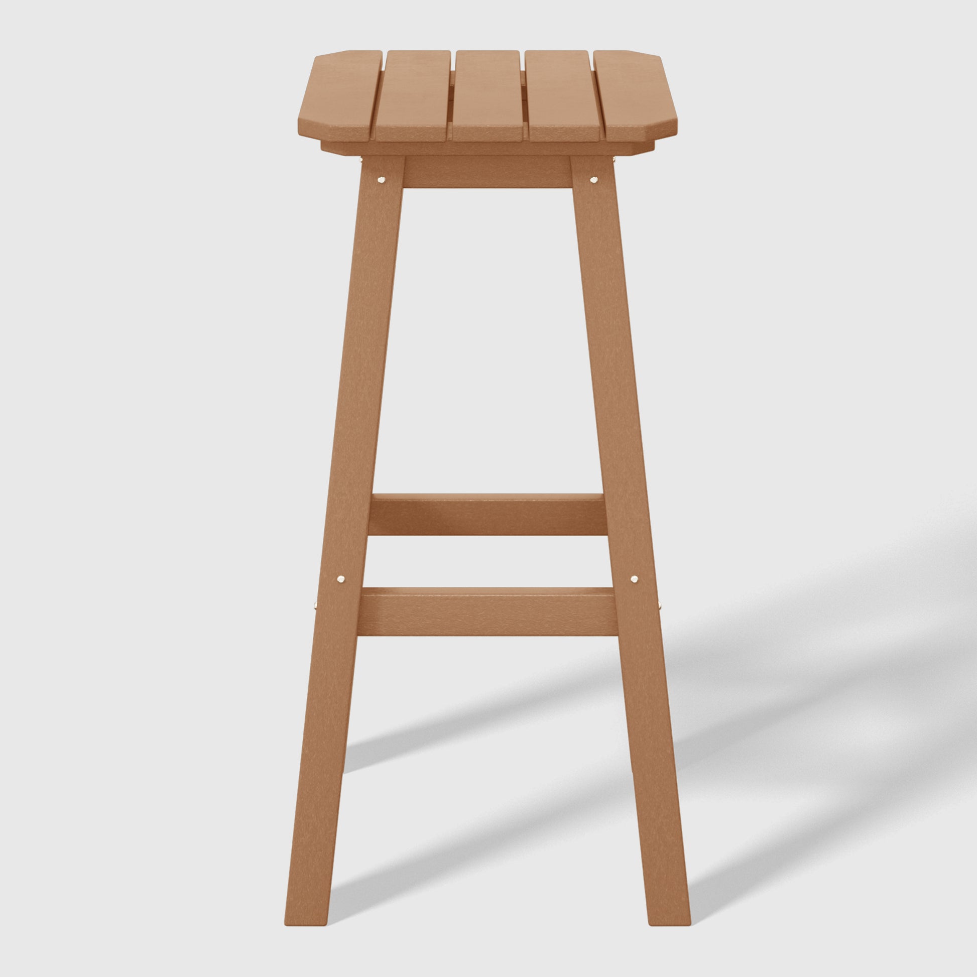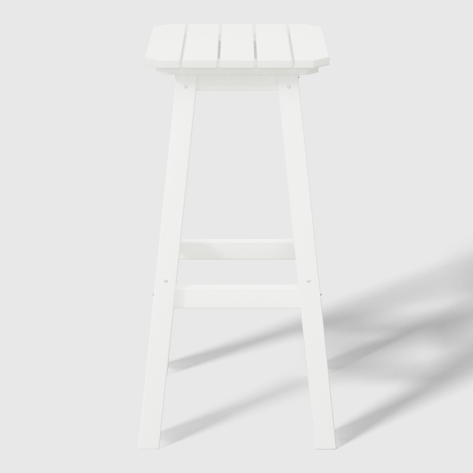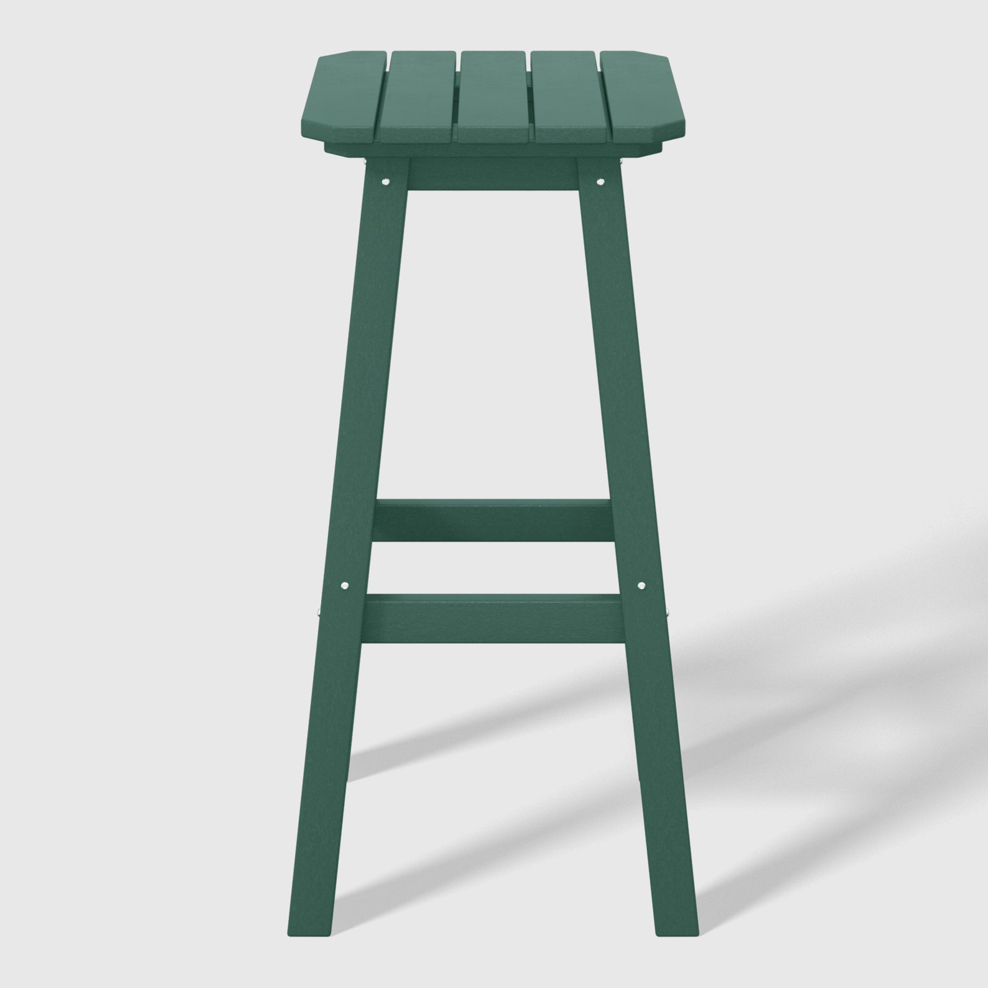 Meet your seating needs with simplicity—this 29" square seat bar stool is a delightful addition to your outdoor patio around your outdoor patio bar or outdoor bistro table. Created out of durable and recycled HDPE material that is perfect for the outdoors thanks to its UV and weather-resistant properties that protect the stool. Available in a range of fade-resistant solid colors, ensuring that the charming color stays vibrant each season. Offering a backless design that allows the stool to be stored underneath the table with ease. Classic yet modern design effortlessly blends with your existing decor. Stable design with the four sturdy square legs and foot bars that provide a well-balanced and comfortable seating experience.