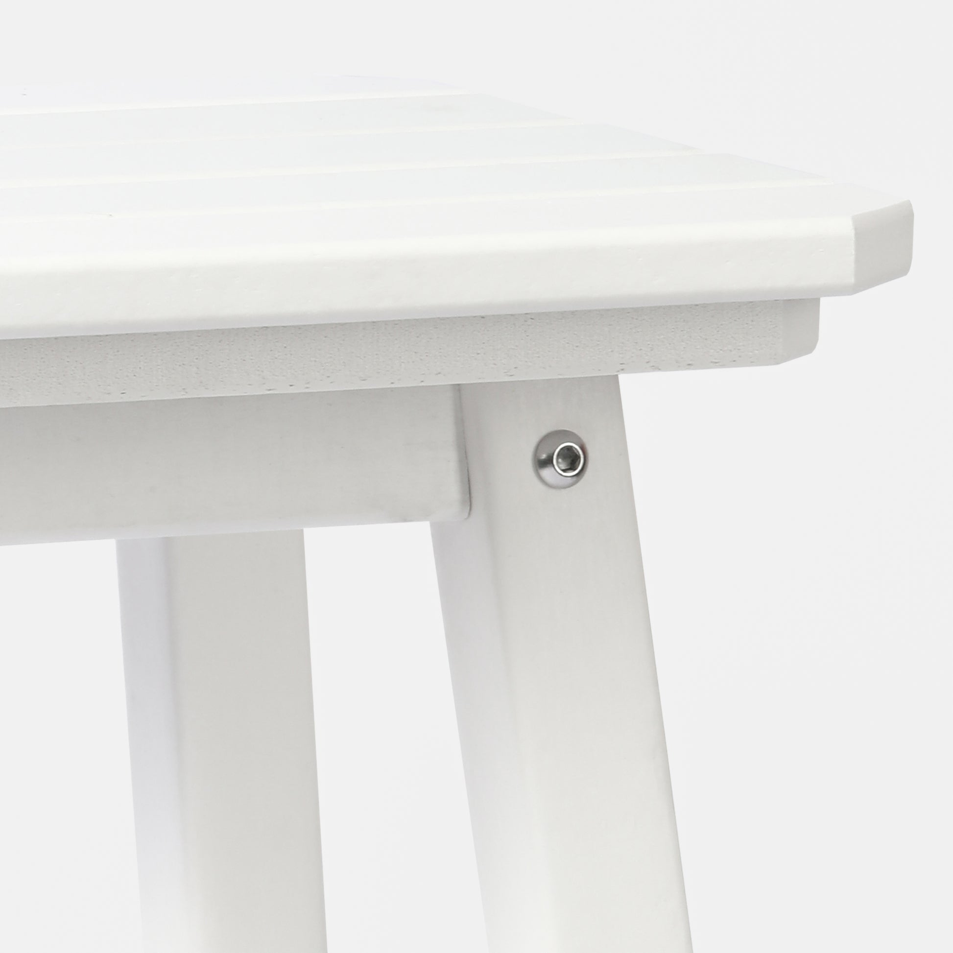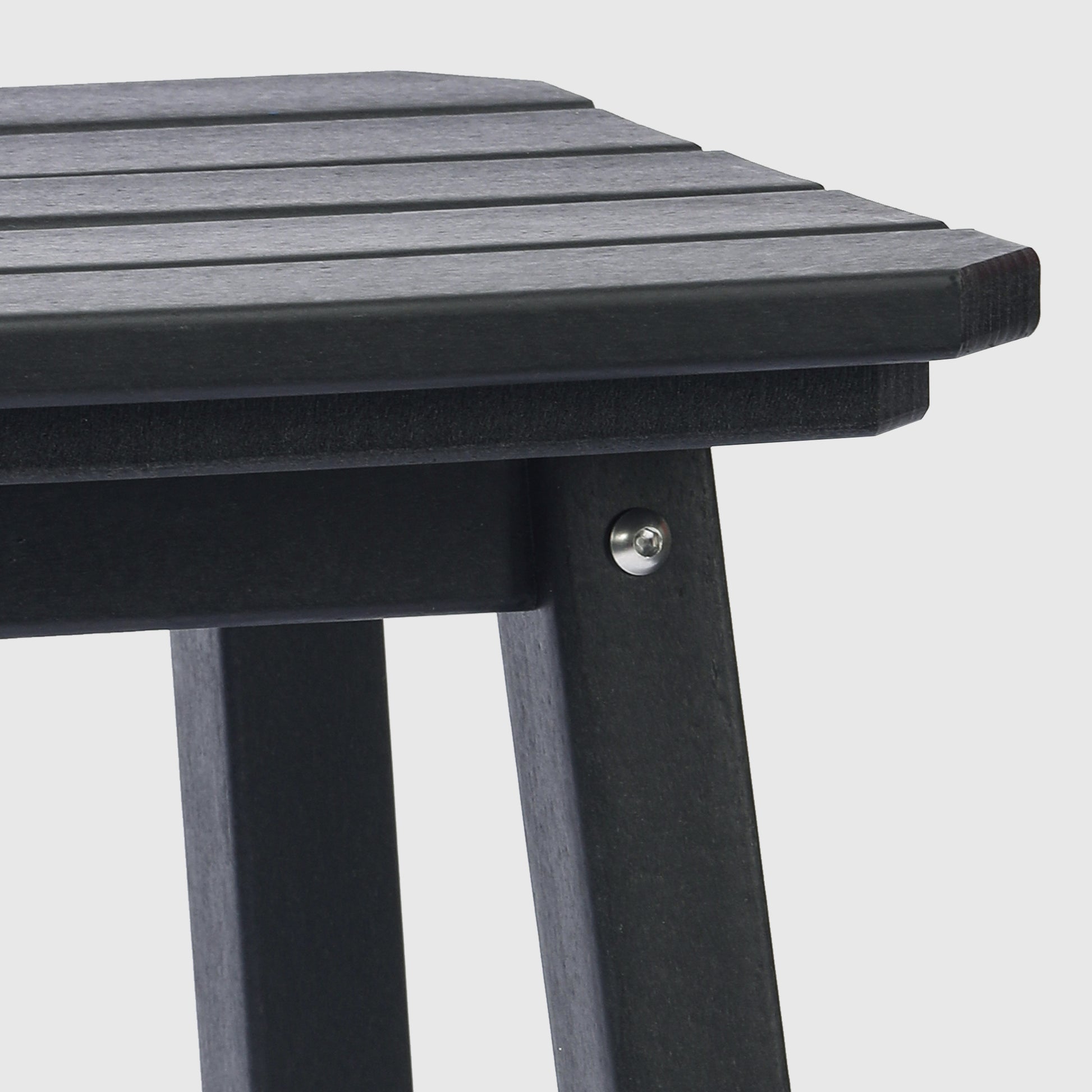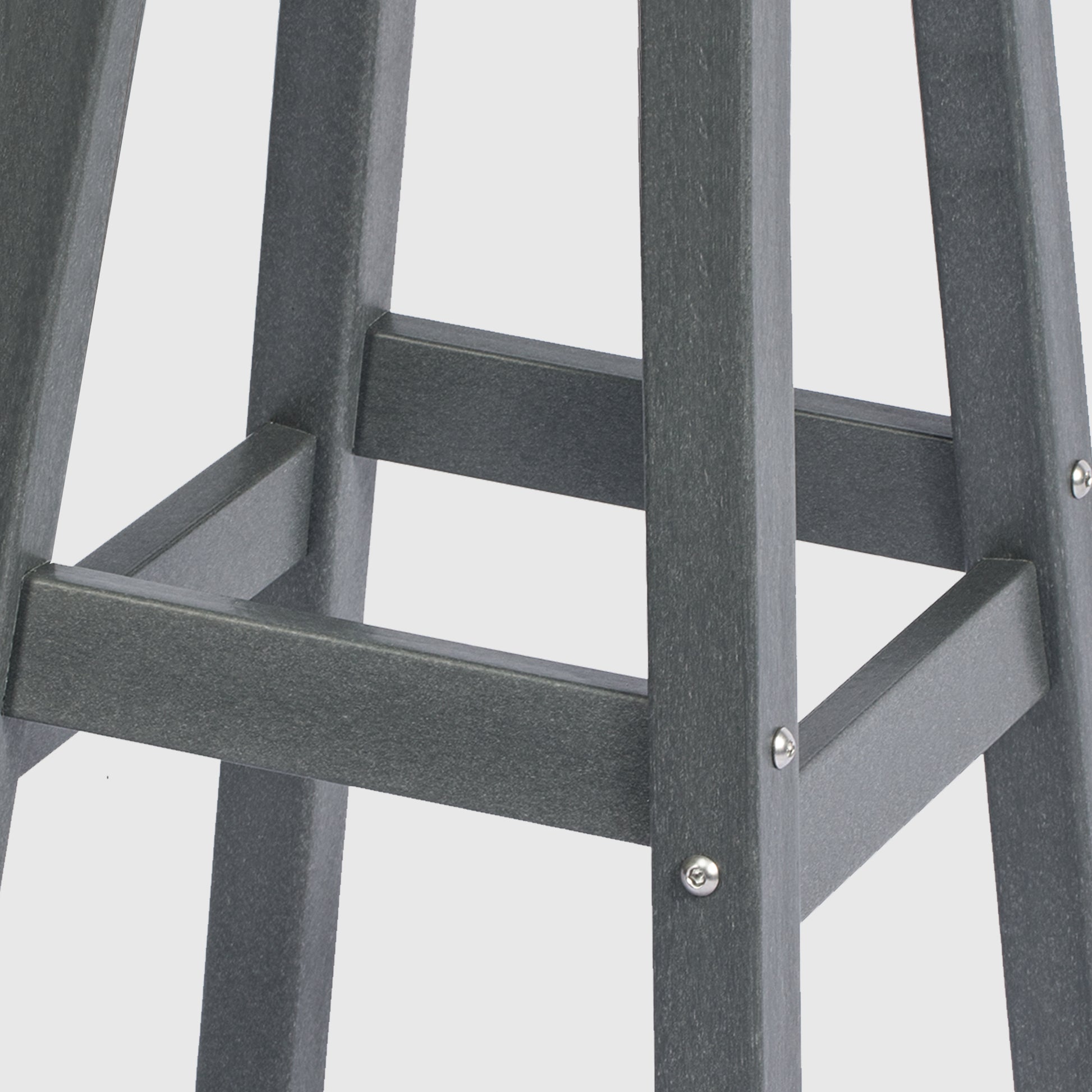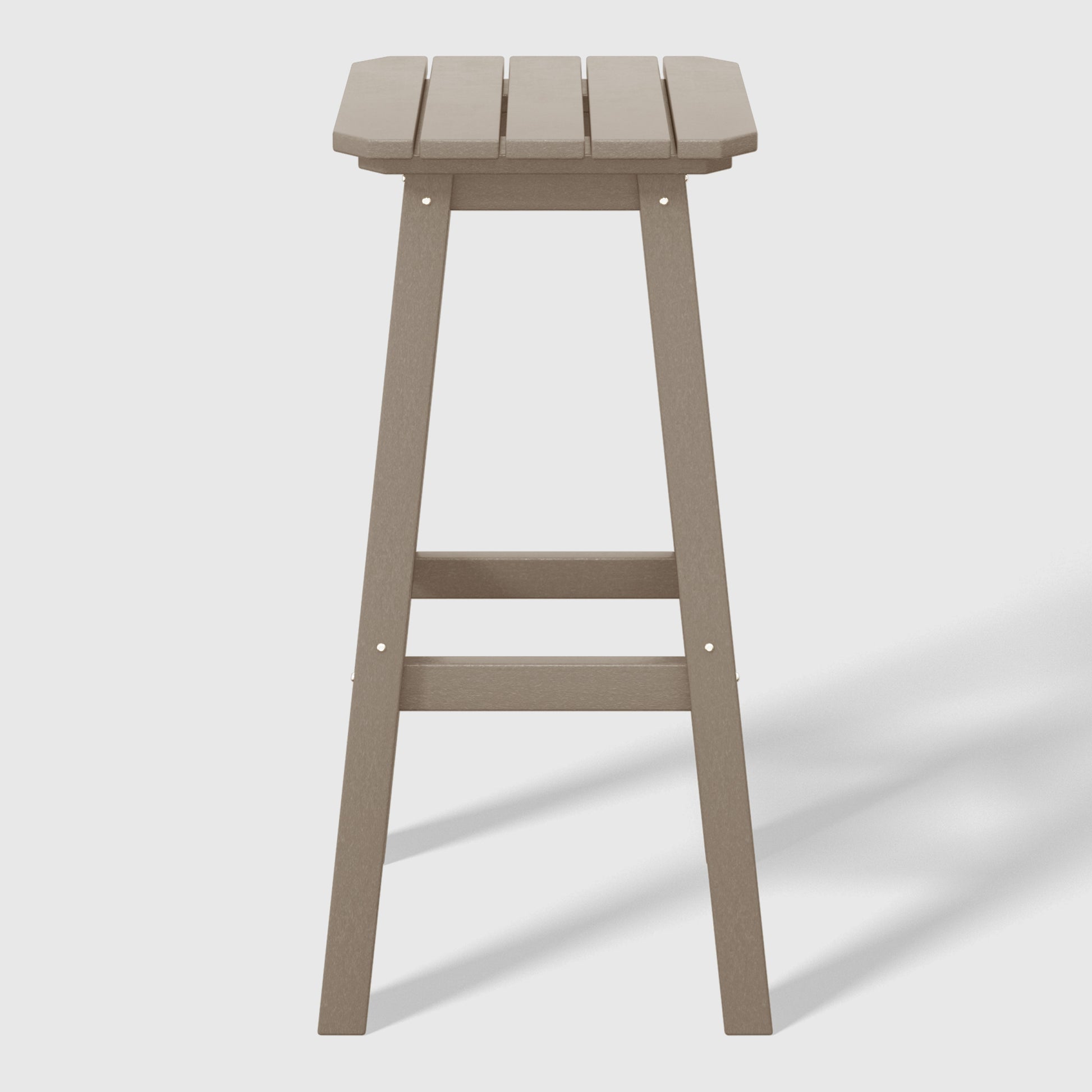 Meet your seating needs with simplicity—this 29" square seat bar stool is a delightful addition to your outdoor patio around your outdoor patio bar or outdoor bistro table. Created out of durable and recycled HDPE material that is perfect for the outdoors thanks to its UV and weather-resistant properties that protect the stool. Available in a range of fade-resistant solid colors, ensuring that the charming color stays vibrant each season. Offering a backless design that allows the stool to be stored underneath the table with ease. Classic yet modern design effortlessly blends with your existing decor. Stable design with the four sturdy square legs and foot bars that provide a well-balanced and comfortable seating experience.