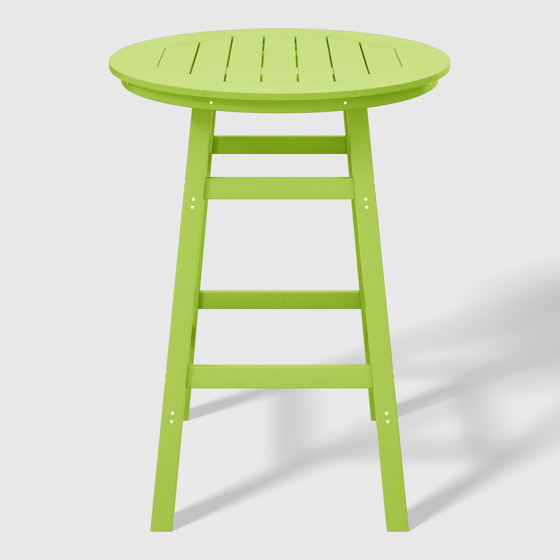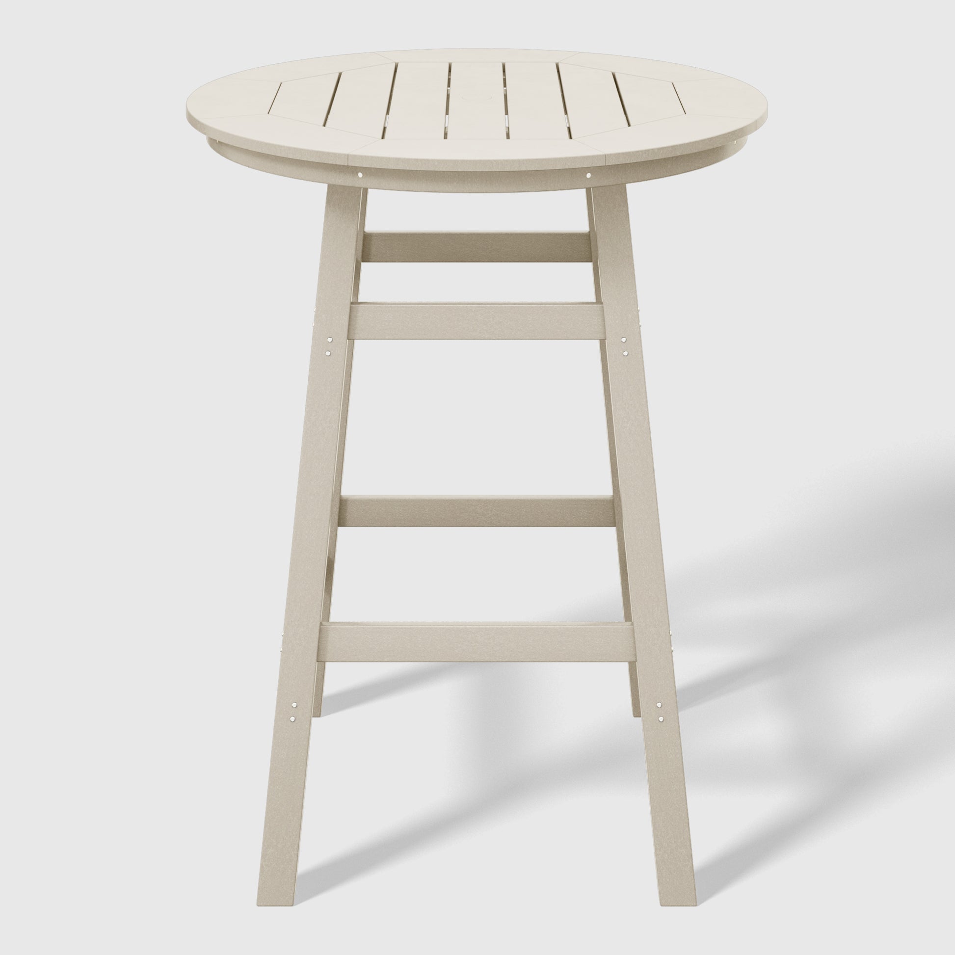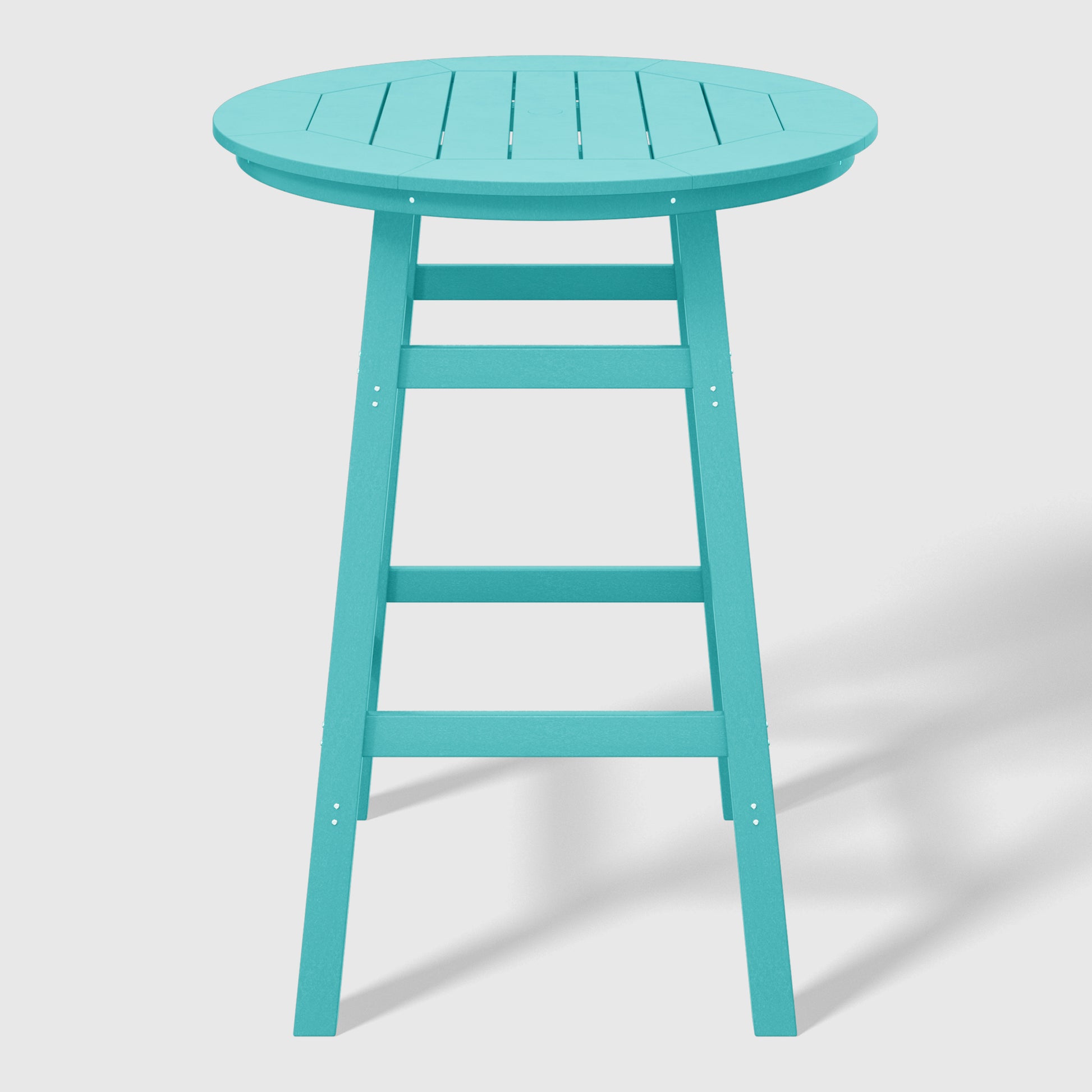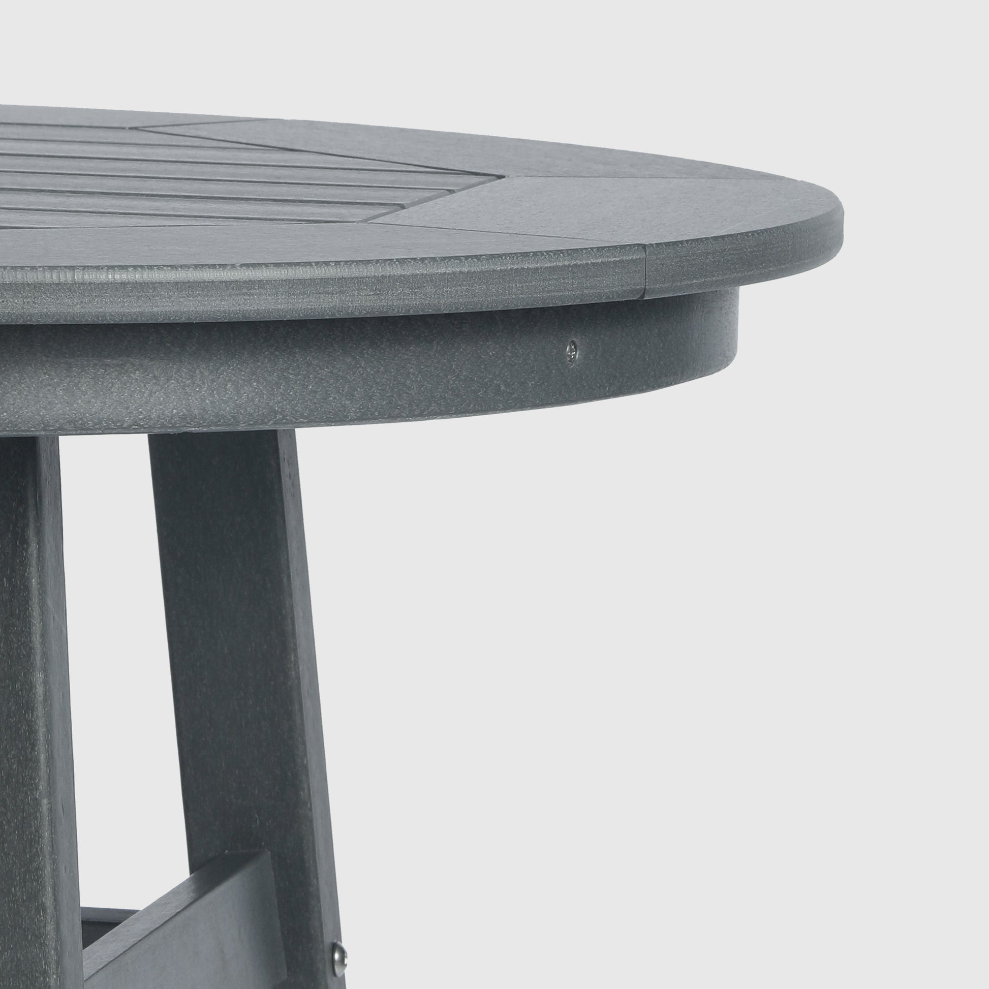 This 35" Round Bar Table is an excellent choice for al fresco dining in the garden or your backyard bar patio. All-weather-resistant materials that is perfect to prevent damage from the outdoor elements. Enjoy hosting friends and family all year round with this durable HDPE material that is UV and fade resistant to protect your beautiful bistro bar table from the strong UV rays and prevent fading and damage. The slatted and octagonal inner tabletop design, paired with the round shape, adds a touch of character to your bistro bar table and has an umbrella hole to place any standard-sized umbrella. The perfect bistro bar table to gather around with your loved ones and friends this spring.