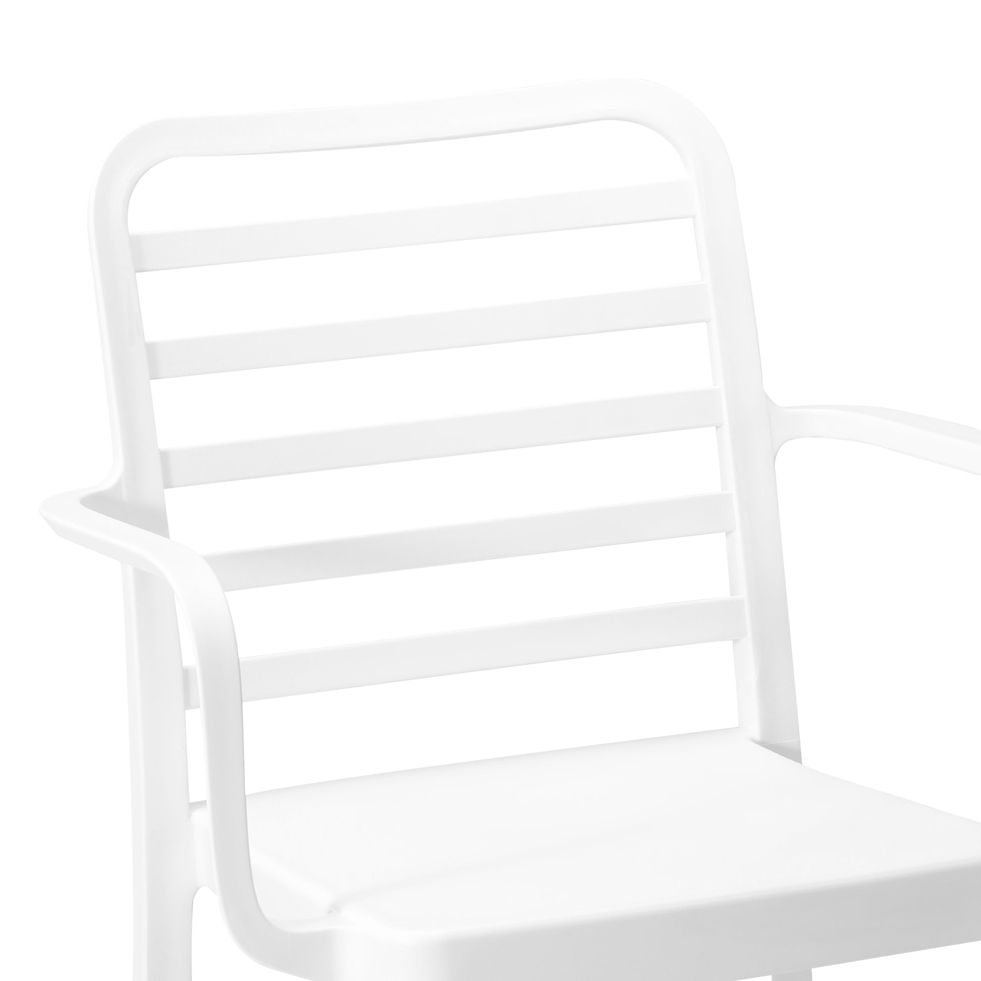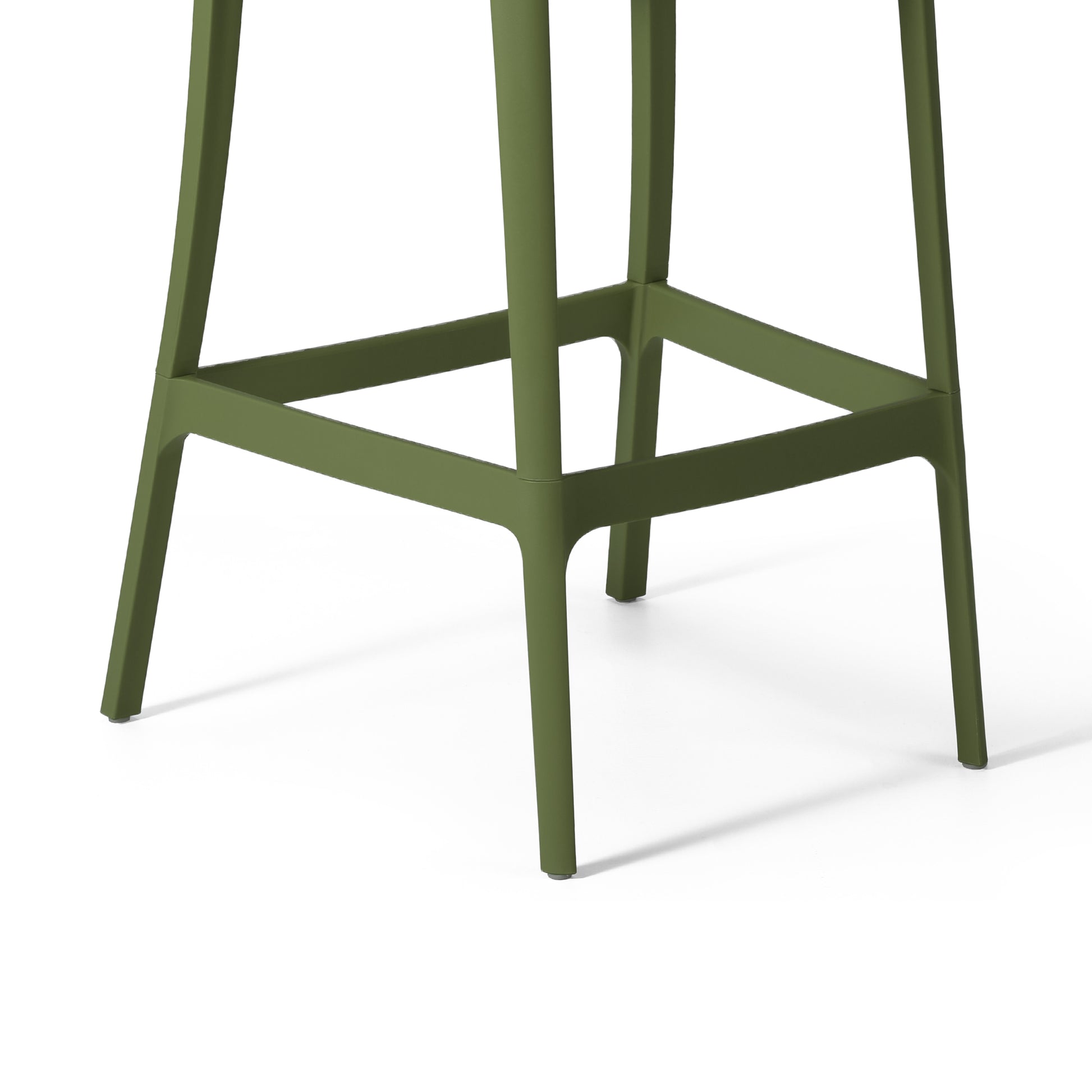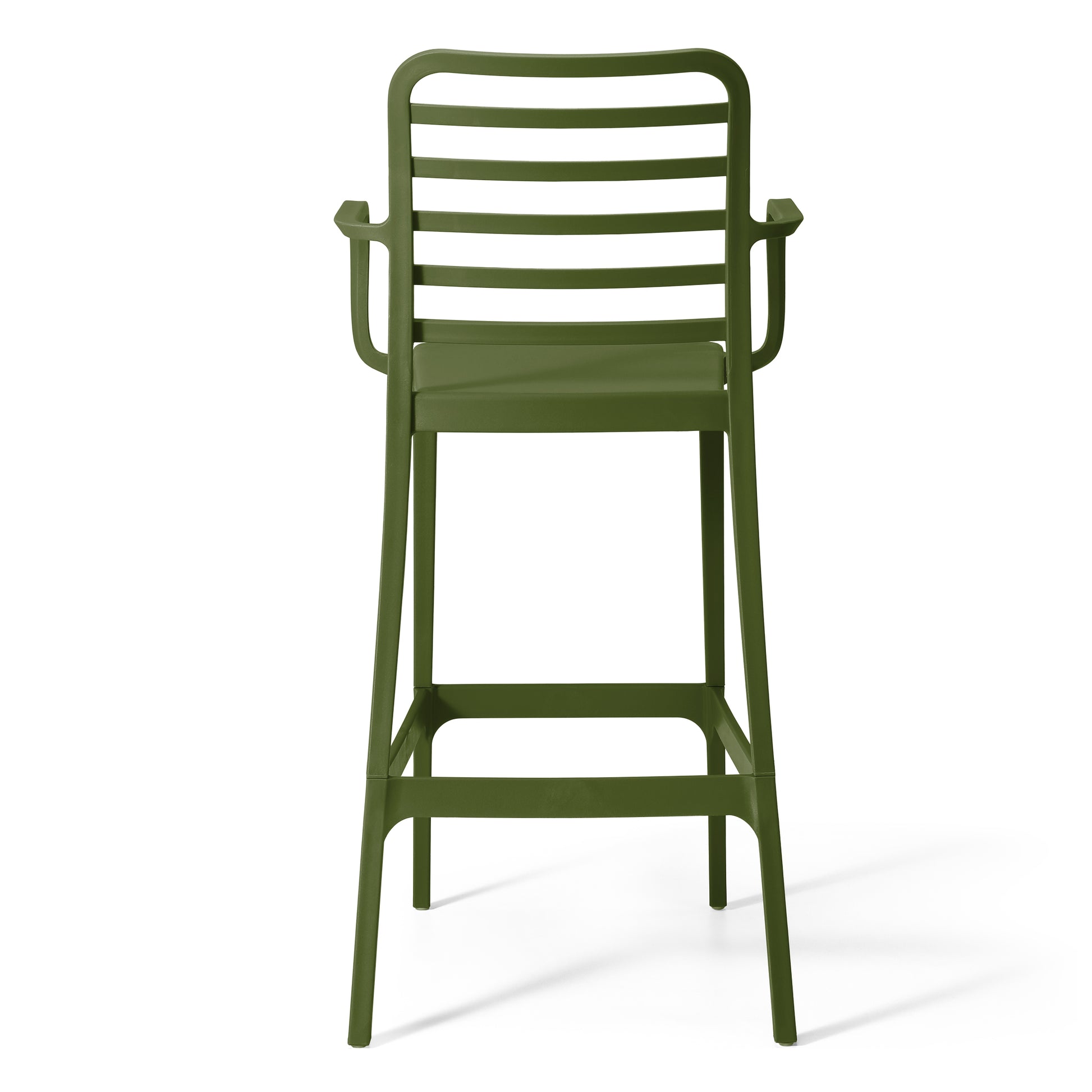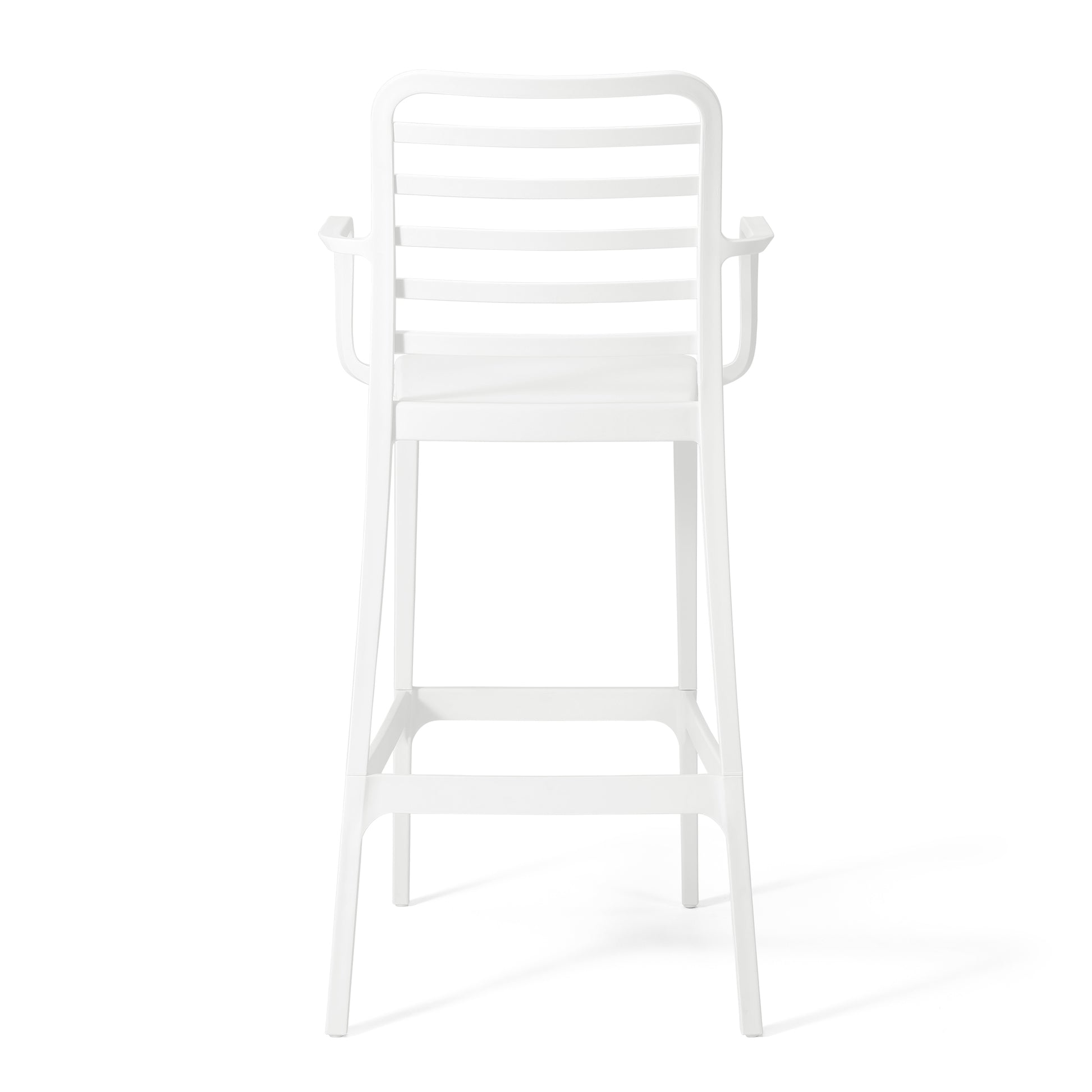 Add charm and vibrant style to your balcony or terrace with this set of two versatile outdoor bar stools. Crafted from durable, all-weather Polypropylene (PP) resin, these 29.5-inch high stools are designed to withstand the elements, maintaining their rich color year-round thanks to UV and fade-resistant properties. Lightweight and easy to move, they're perfect for creating a flexible dining or entertaining area, even in small spaces. A ventilated backrest ensures comfort on warm evenings, and a convenient footrest provides added support. Splayed back legs add stability. For added versatility, the bottom half of the base is removable, allowing these bar stools to convert into standard dining chairs. When disassembled, they offer a more compact storage solution.