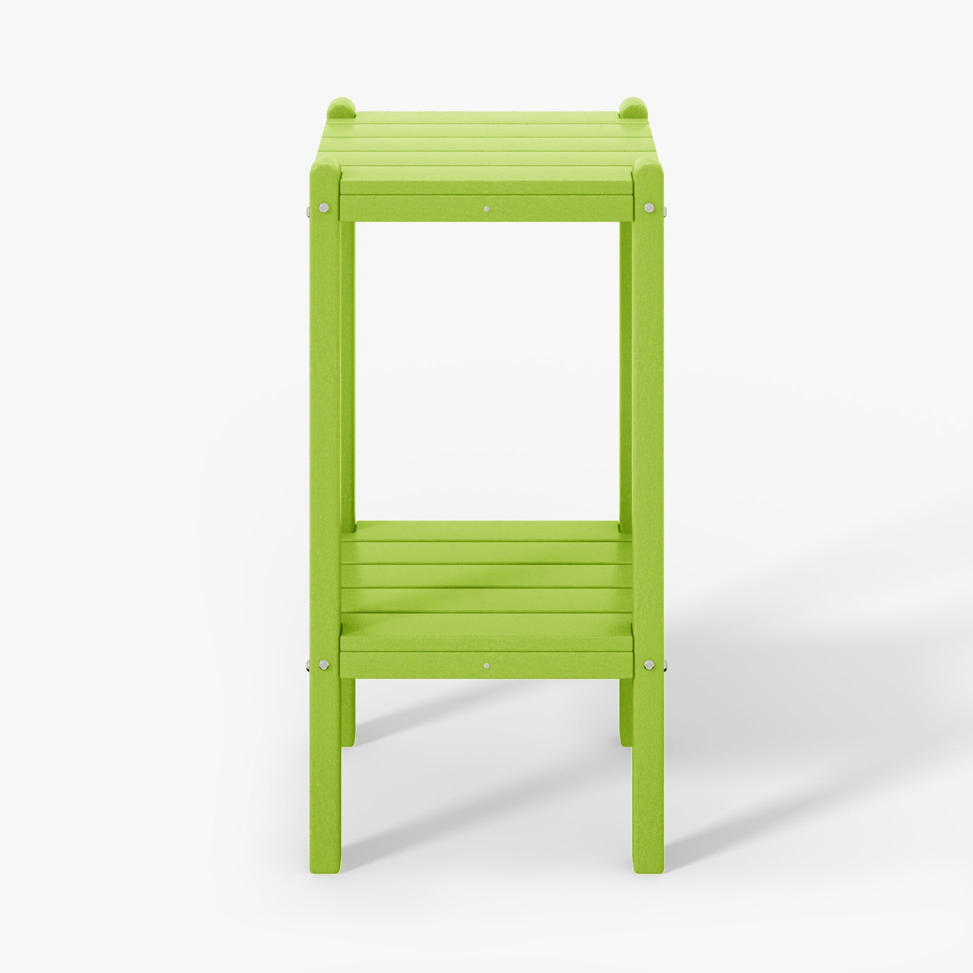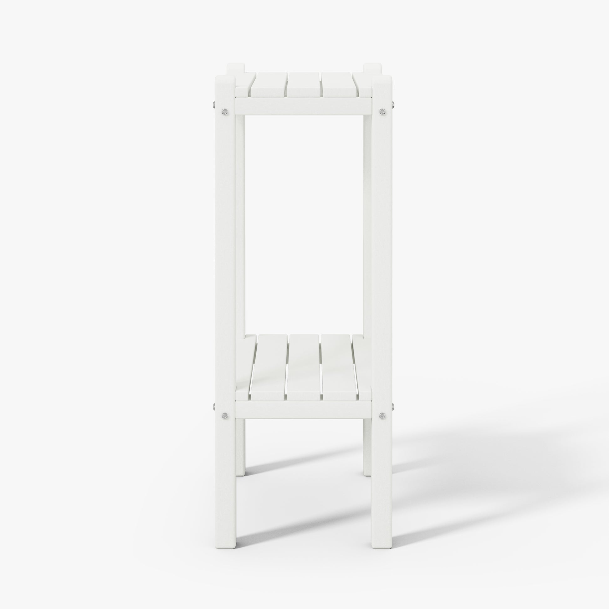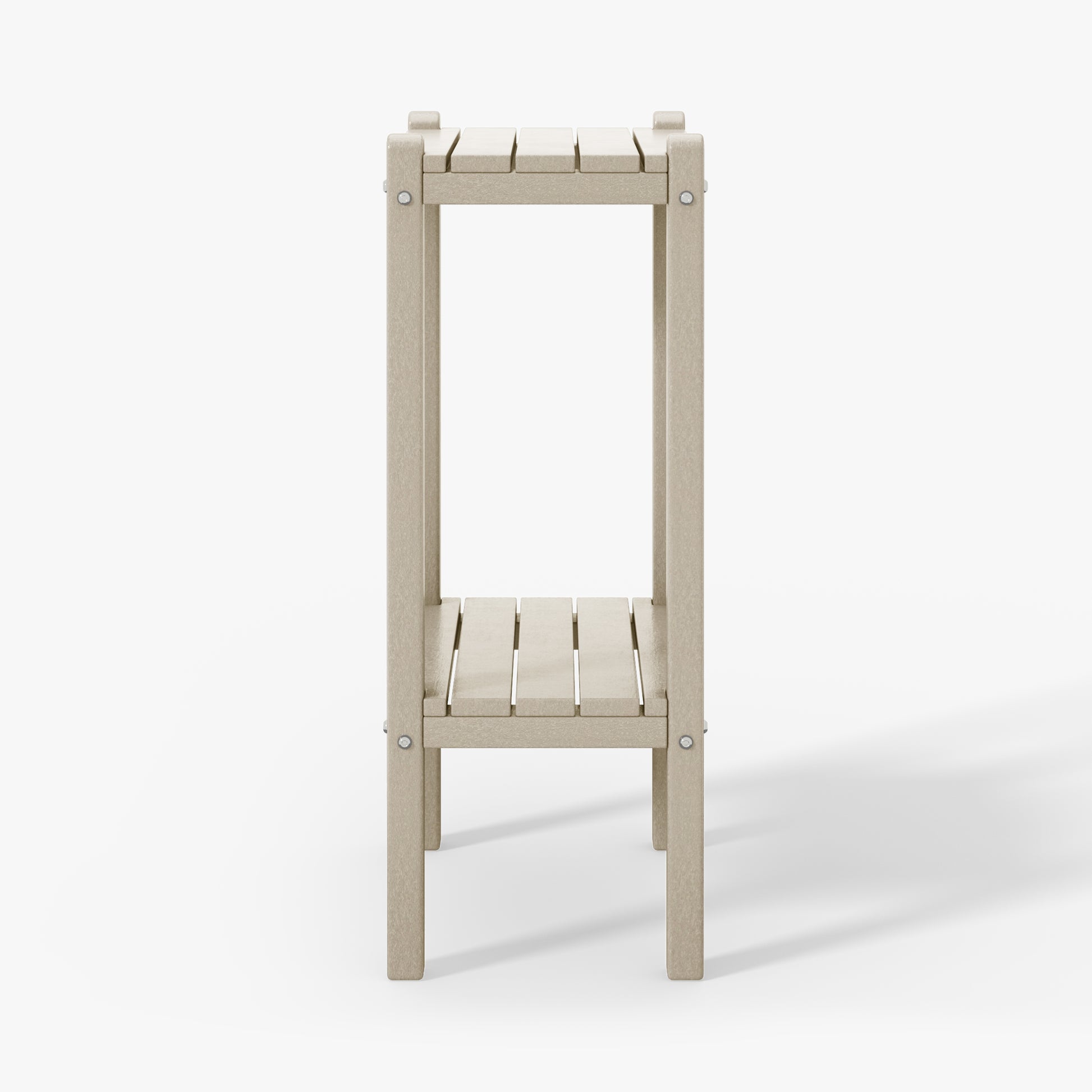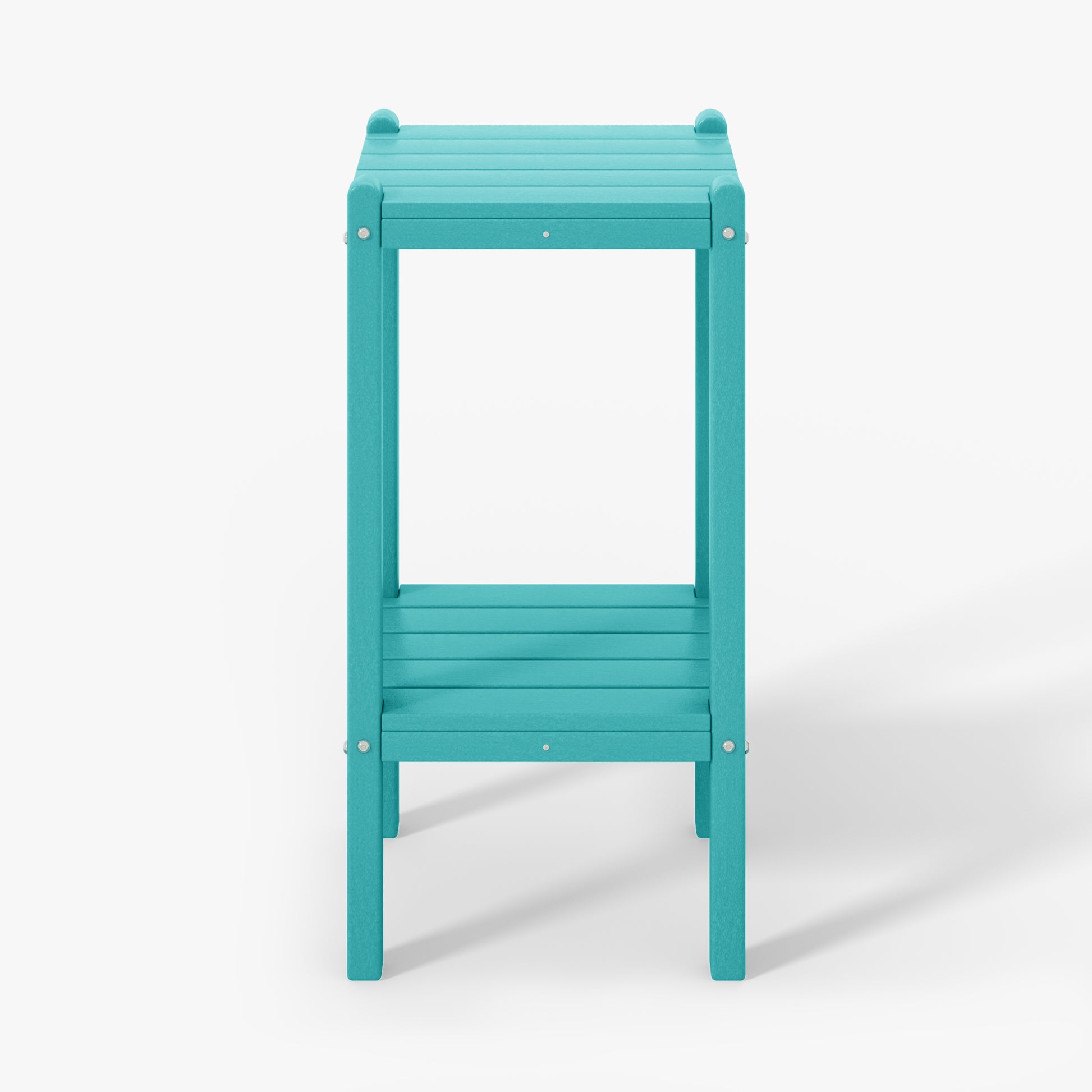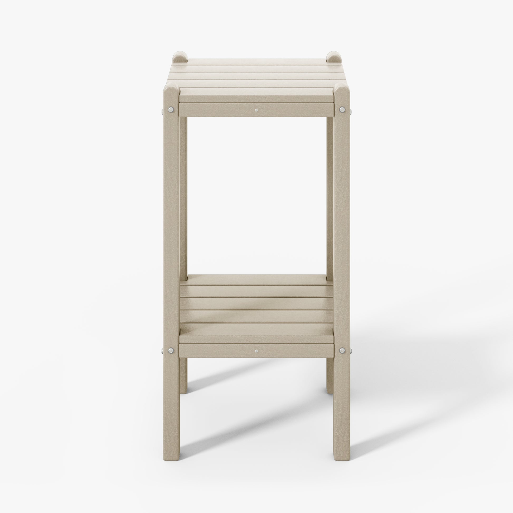 Indulge in versatile sophistication with this 36" high outdoor side table, ideal for adding elegance by the poolside or as a stylish storage solution in your bathroom. skillfully fashioned from durable HDPE material, its innovative two-tier design offers ample storage while ensuring exceptional UV and fade resistance, perfect for outdoor settings. sleek proportions allow effortless placement next to your sofa, in the bathroom, or in cozy corners. understated yet refined end table adds enduring durability and exquisite design to your home. your perceptive guests during outdoor gatherings will appreciate the convenience and allure of this two-tier side table.