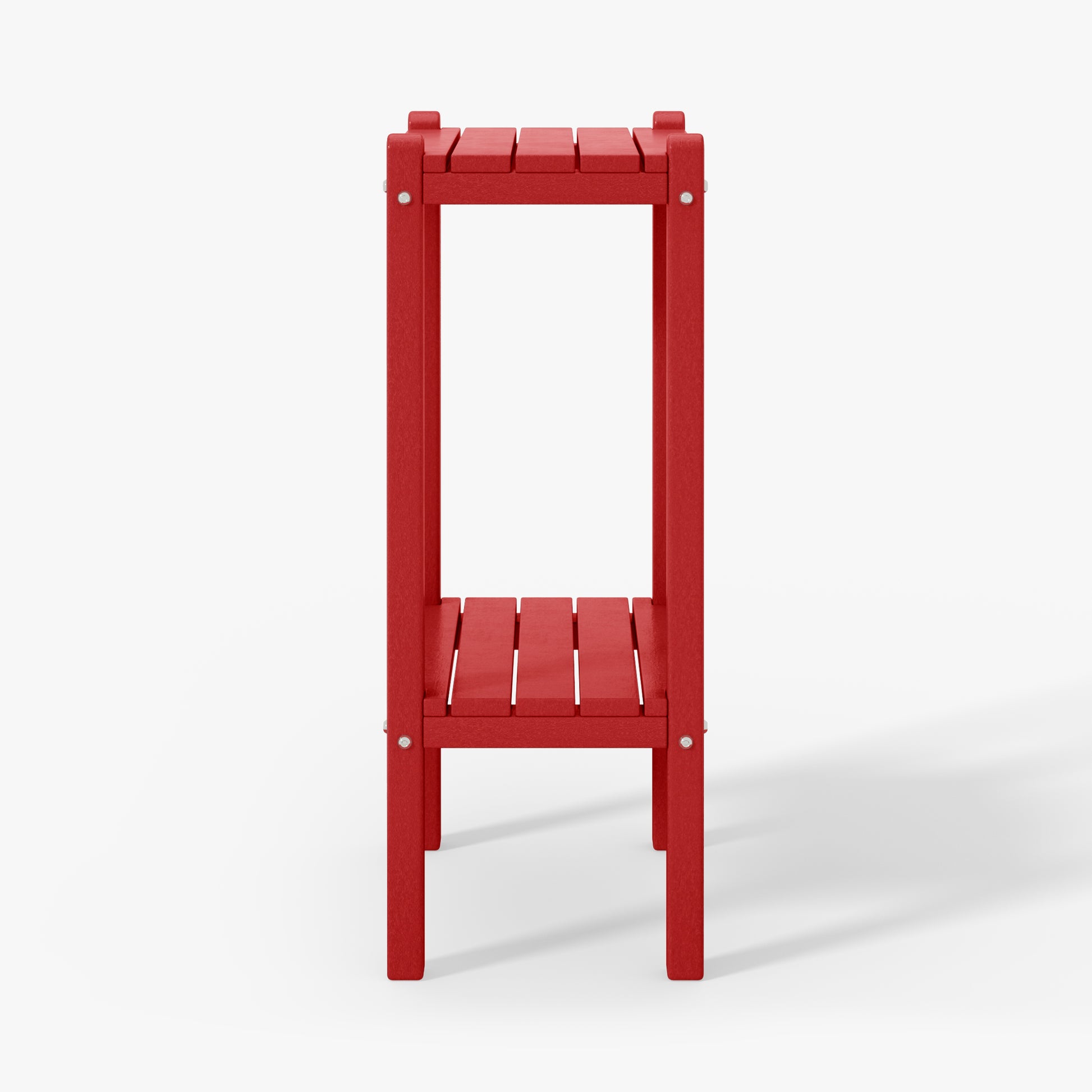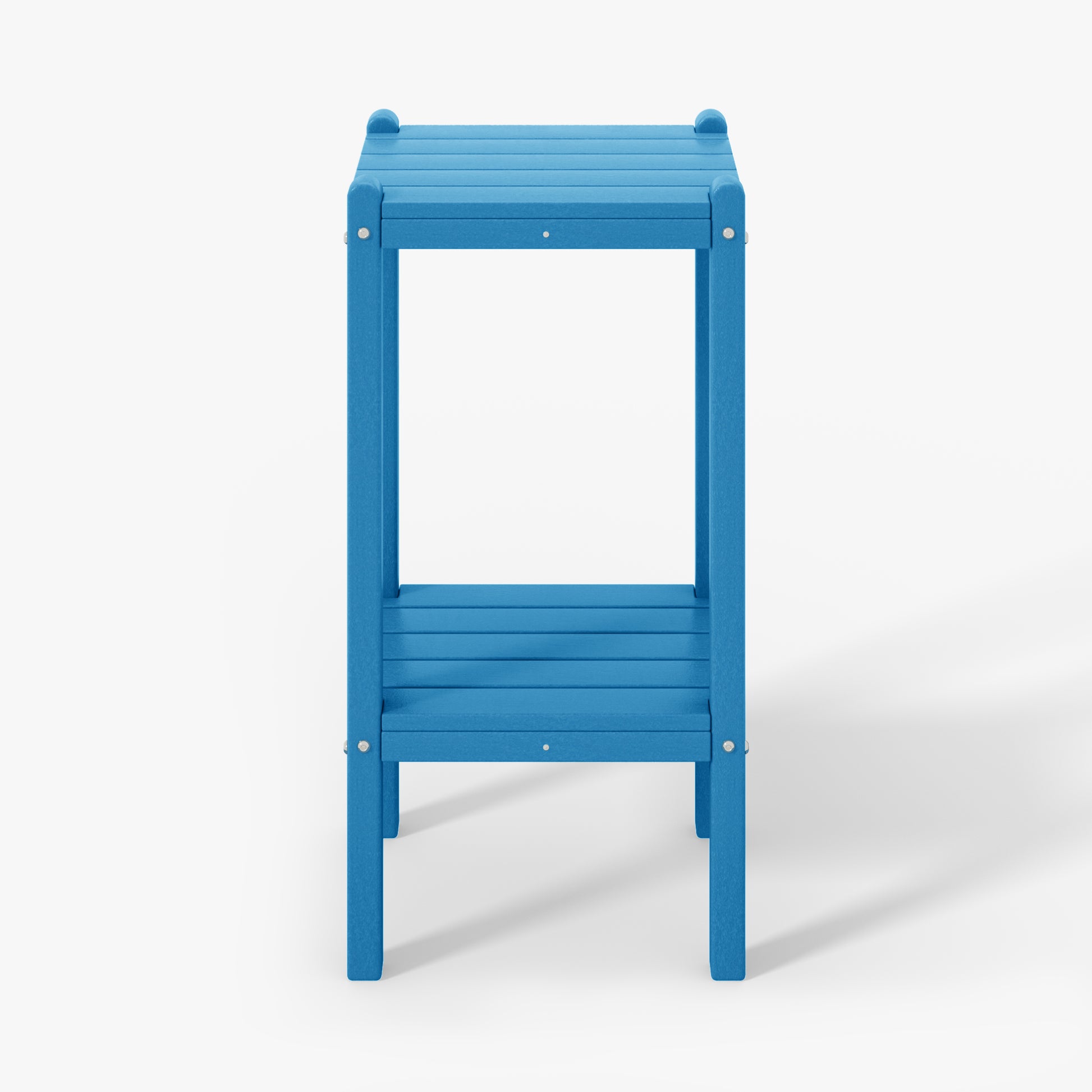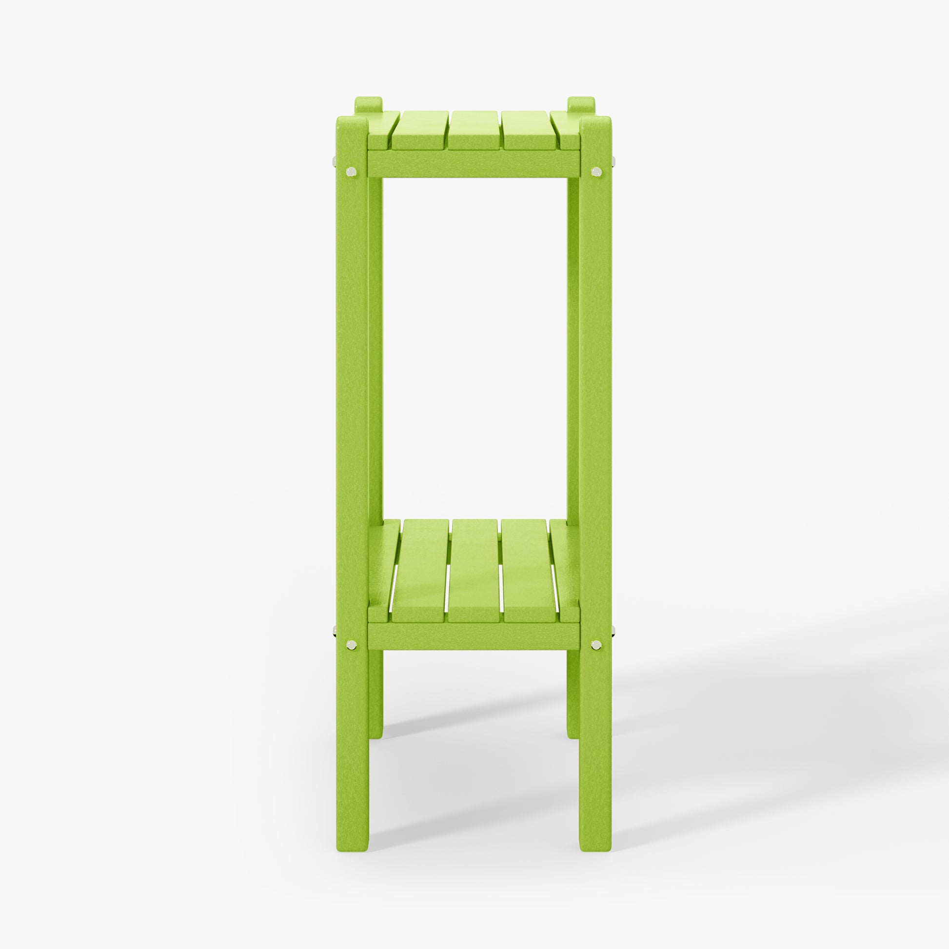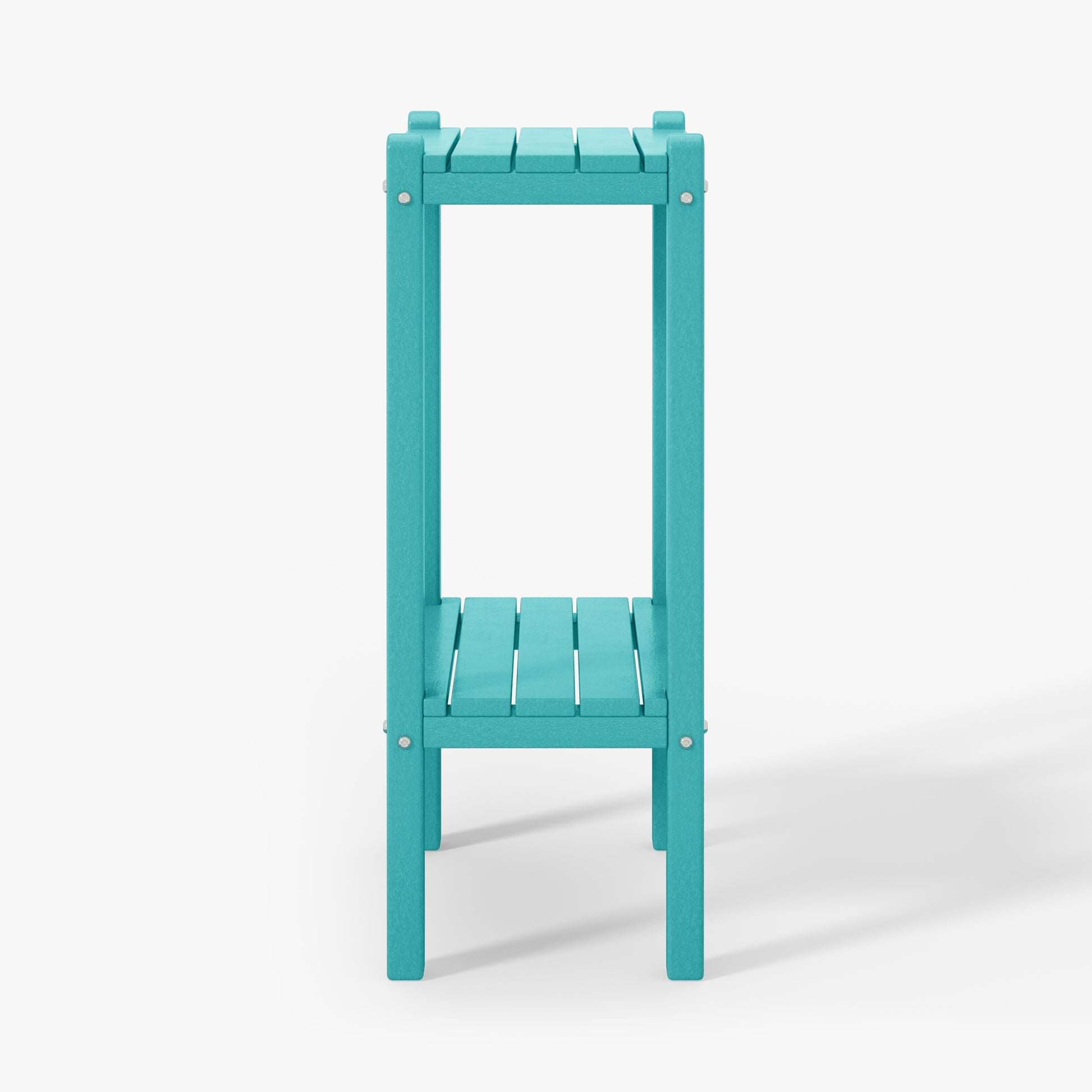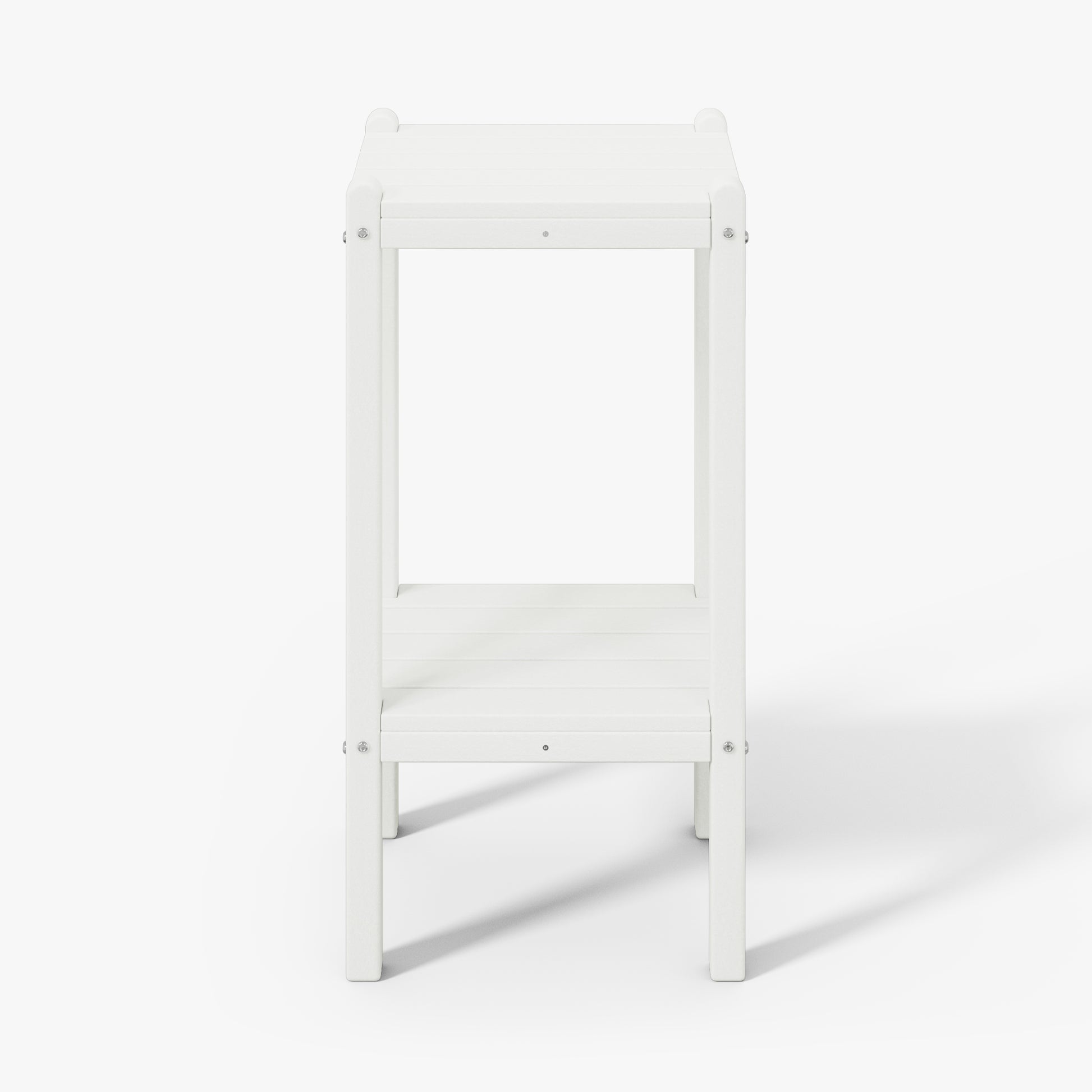 Indulge in versatile sophistication with this 36" high outdoor side table, ideal for adding elegance by the poolside or as a stylish storage solution in your bathroom. skillfully fashioned from durable HDPE material, its innovative two-tier design offers ample storage while ensuring exceptional UV and fade resistance, perfect for outdoor settings. sleek proportions allow effortless placement next to your sofa, in the bathroom, or in cozy corners. understated yet refined end table adds enduring durability and exquisite design to your home. your perceptive guests during outdoor gatherings will appreciate the convenience and allure of this two-tier side table.