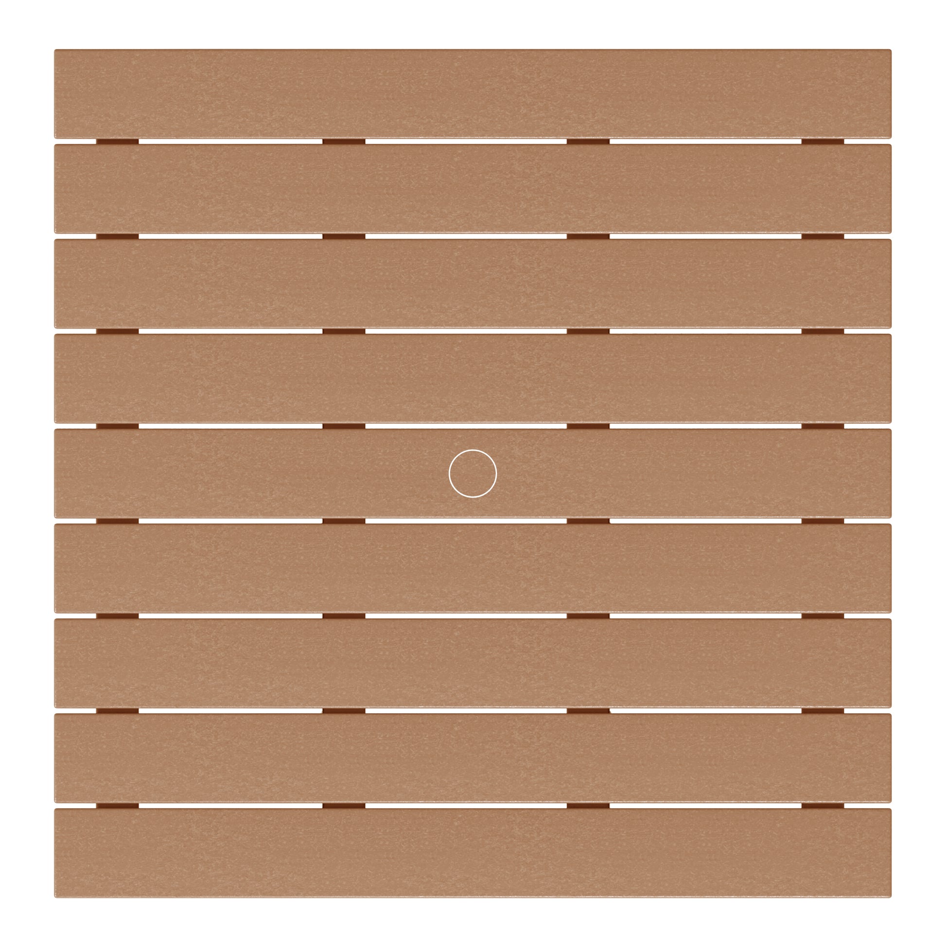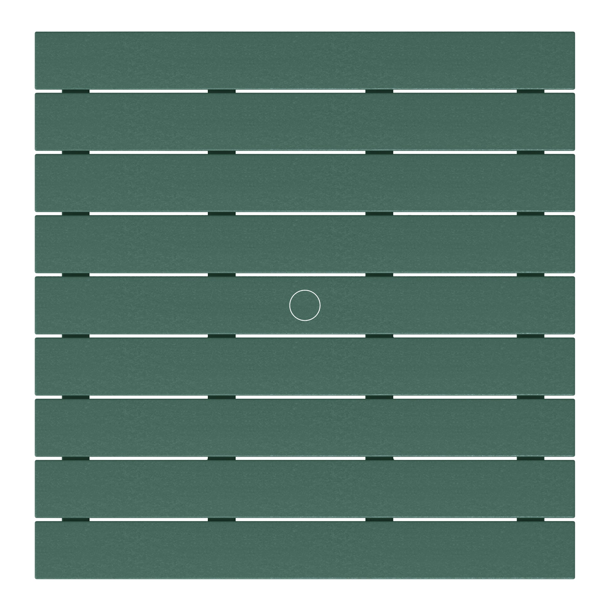 - Table outfitted with center hole for that can fit a 1.5" inch diameter umbrella pole (sold separately); hole cover included