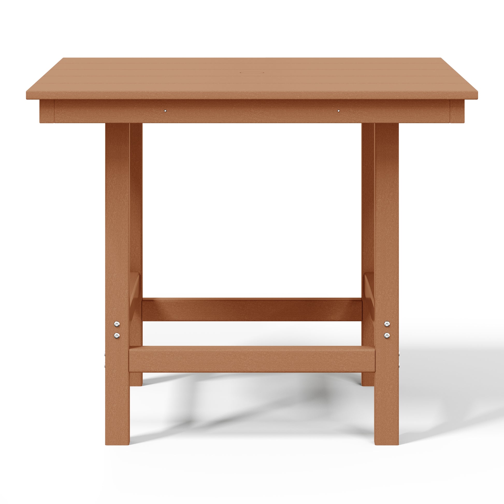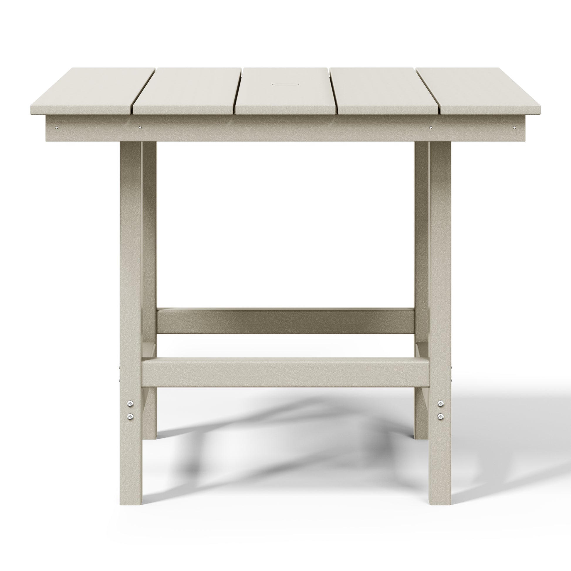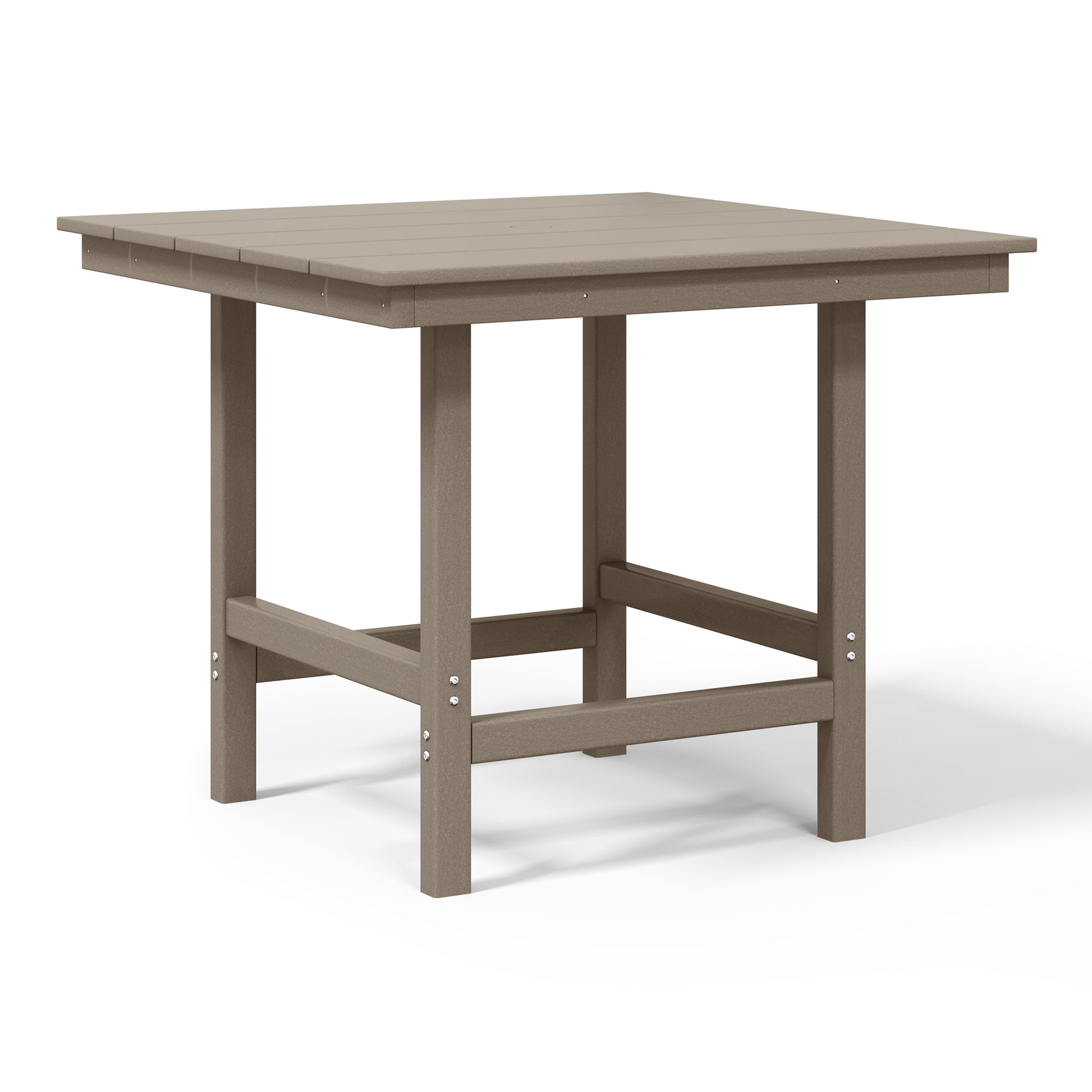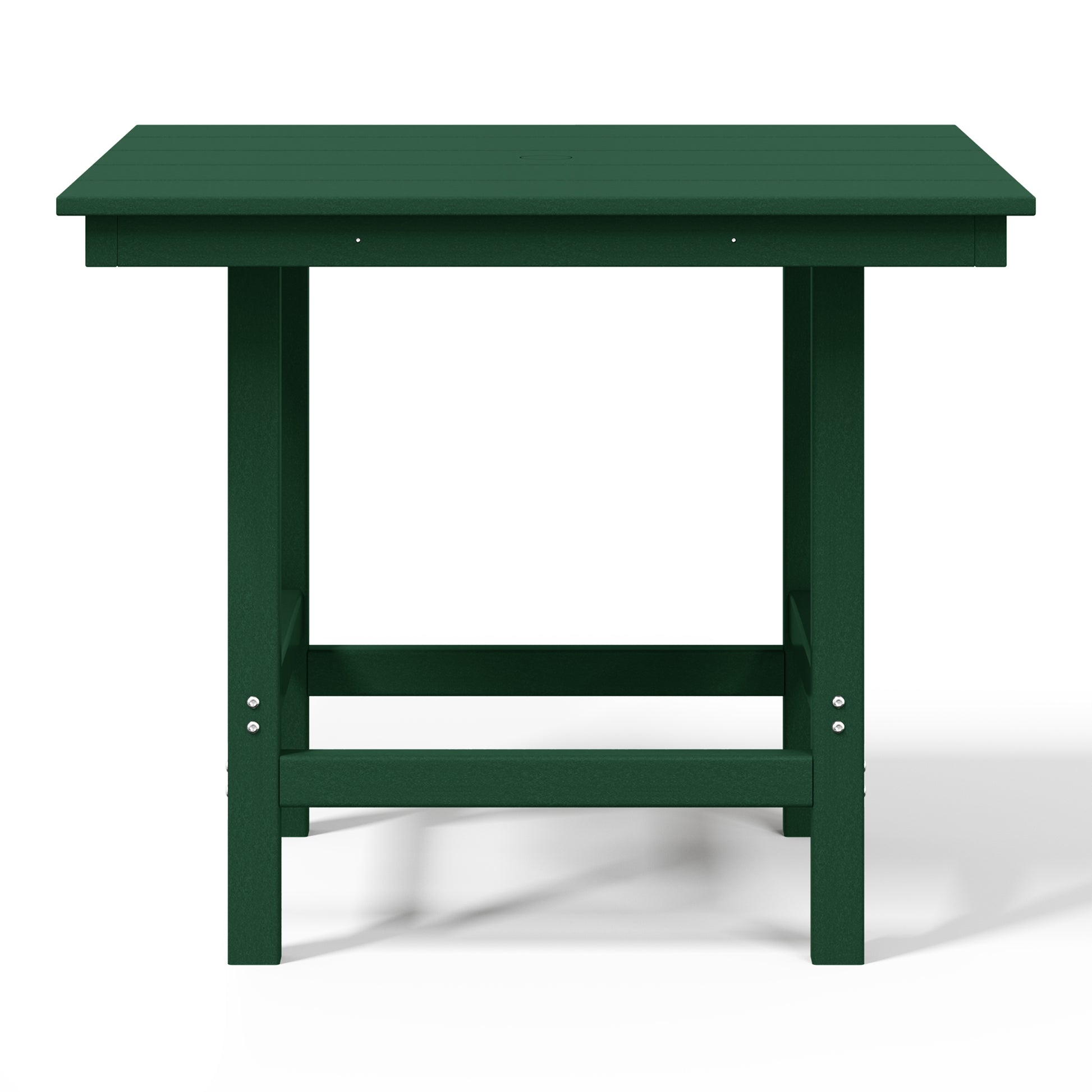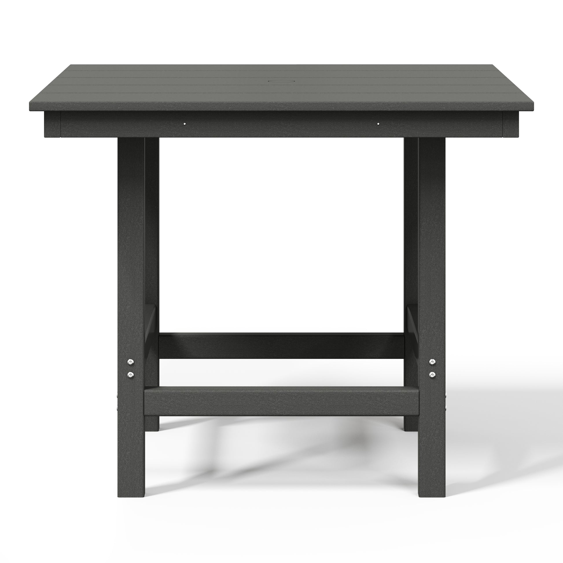 Gather around for a delicious meal and create happy memories with your family around this charming 36" Wide Square Patio Dining Table. Crafted from durable all-weather HDPE material, it is fade- and UV-resistant, making it the ideal choice for outdoor use. Enjoy warm, sunny days without the sun getting in the way, thanks to the table's built-in 1.9" diameter umbrella hole, perfect for adding to your existing patio umbrella. Designed for durability and longevity, the table features a reinforced bottom that reduces wobbling and increases overall stability, along with stainless steel plates running along the side skirts to help prevent warping.