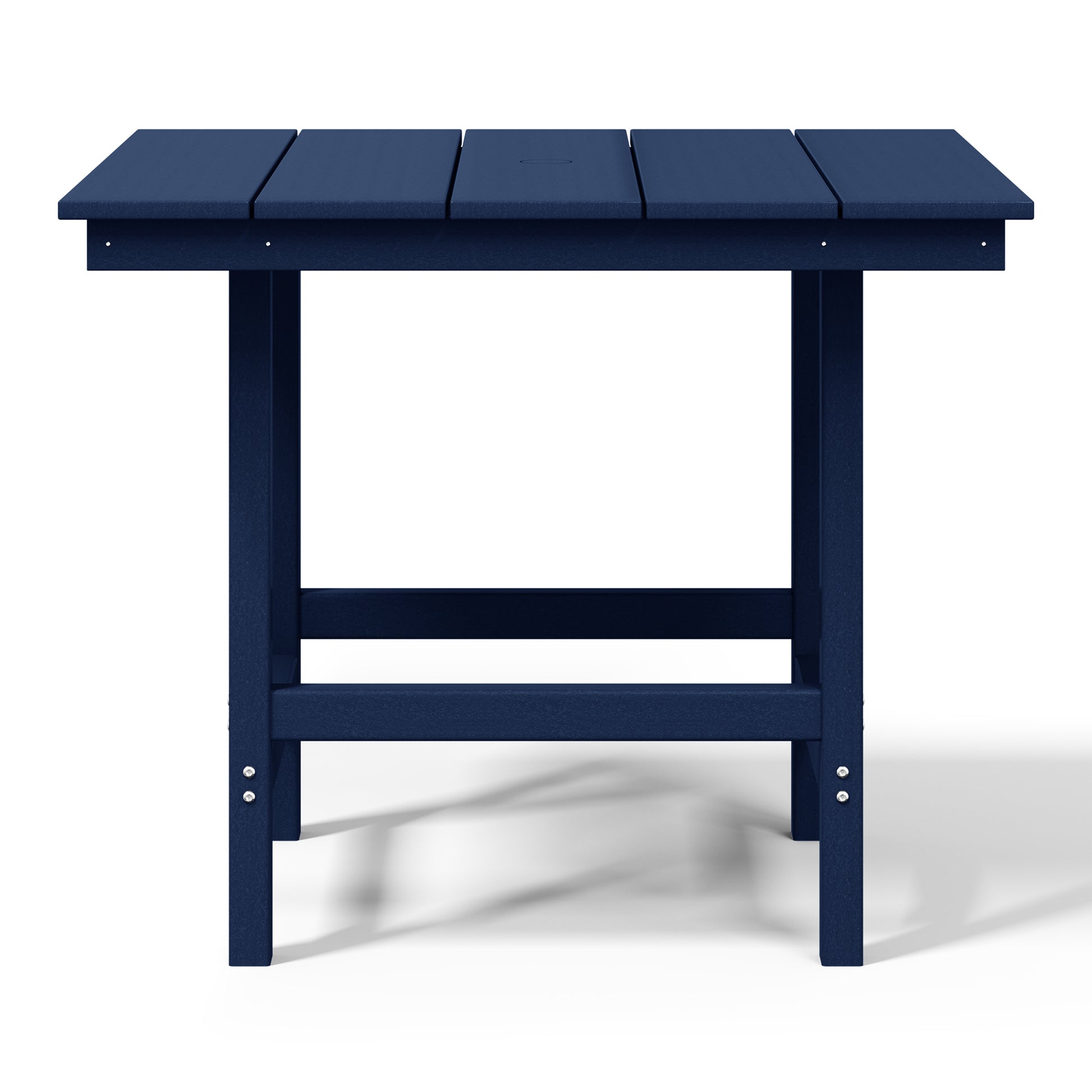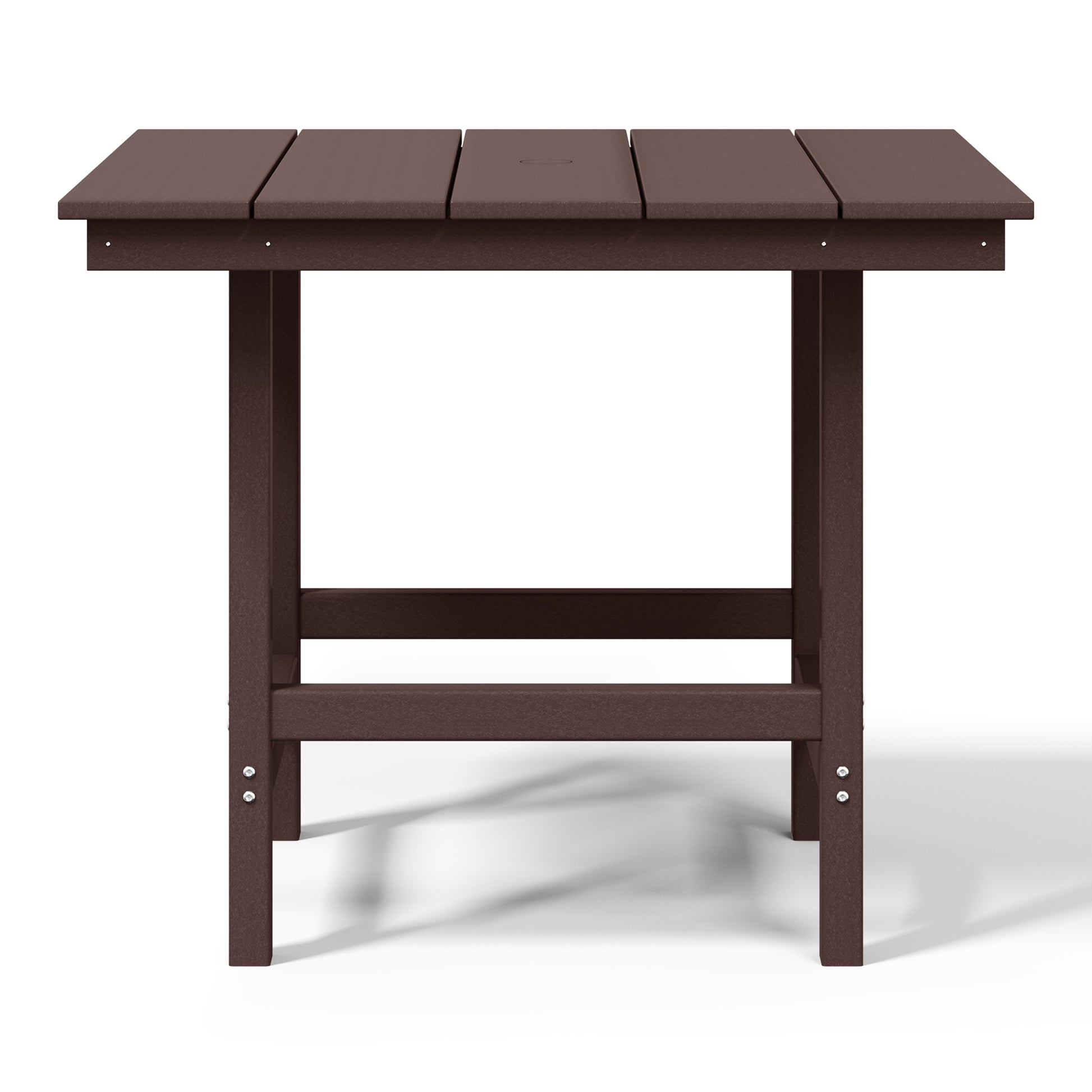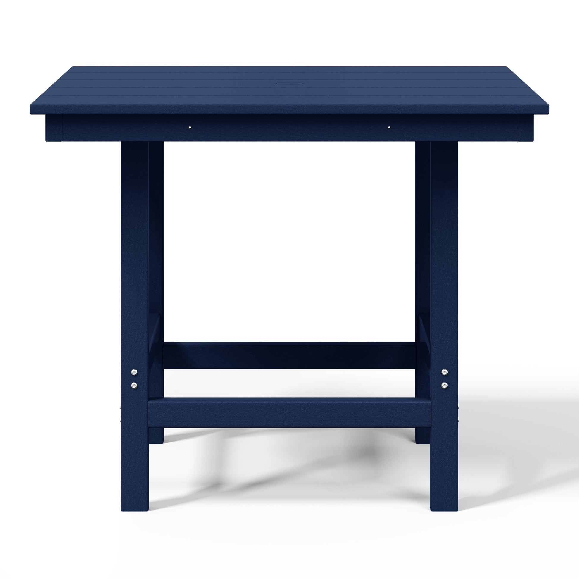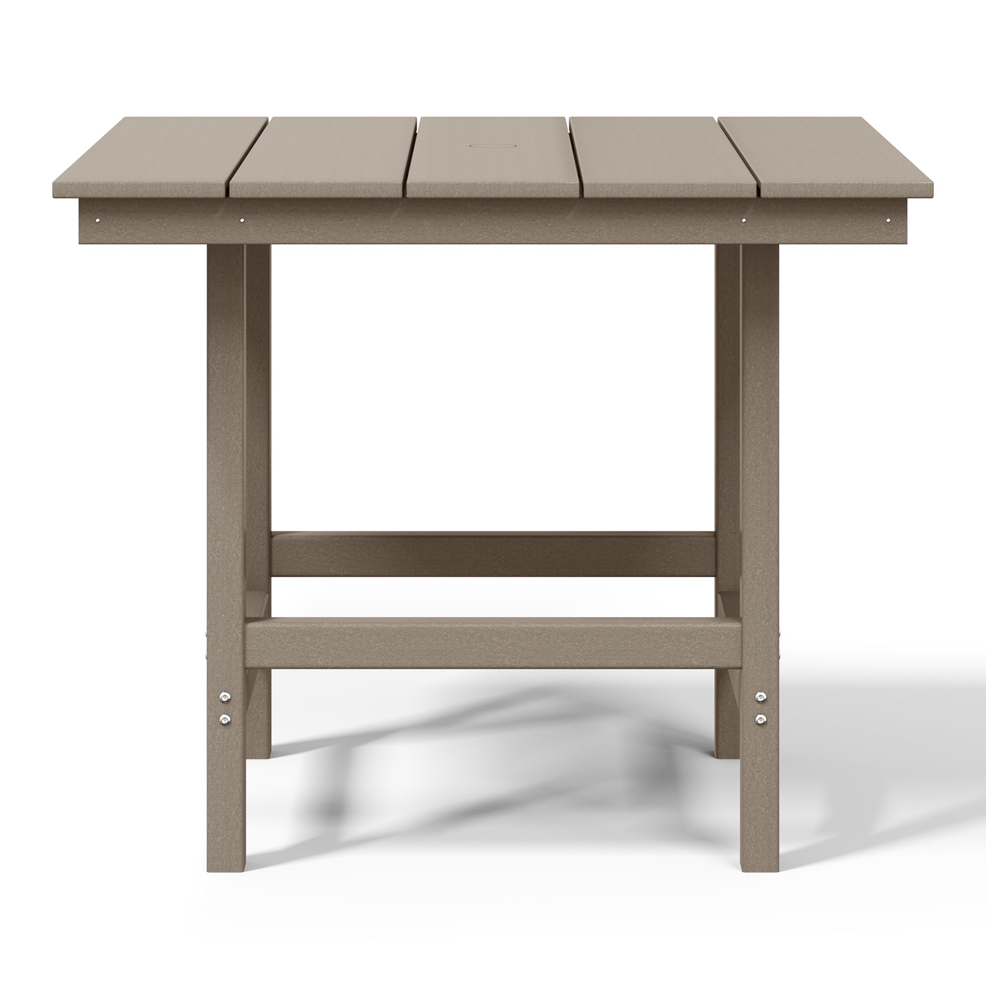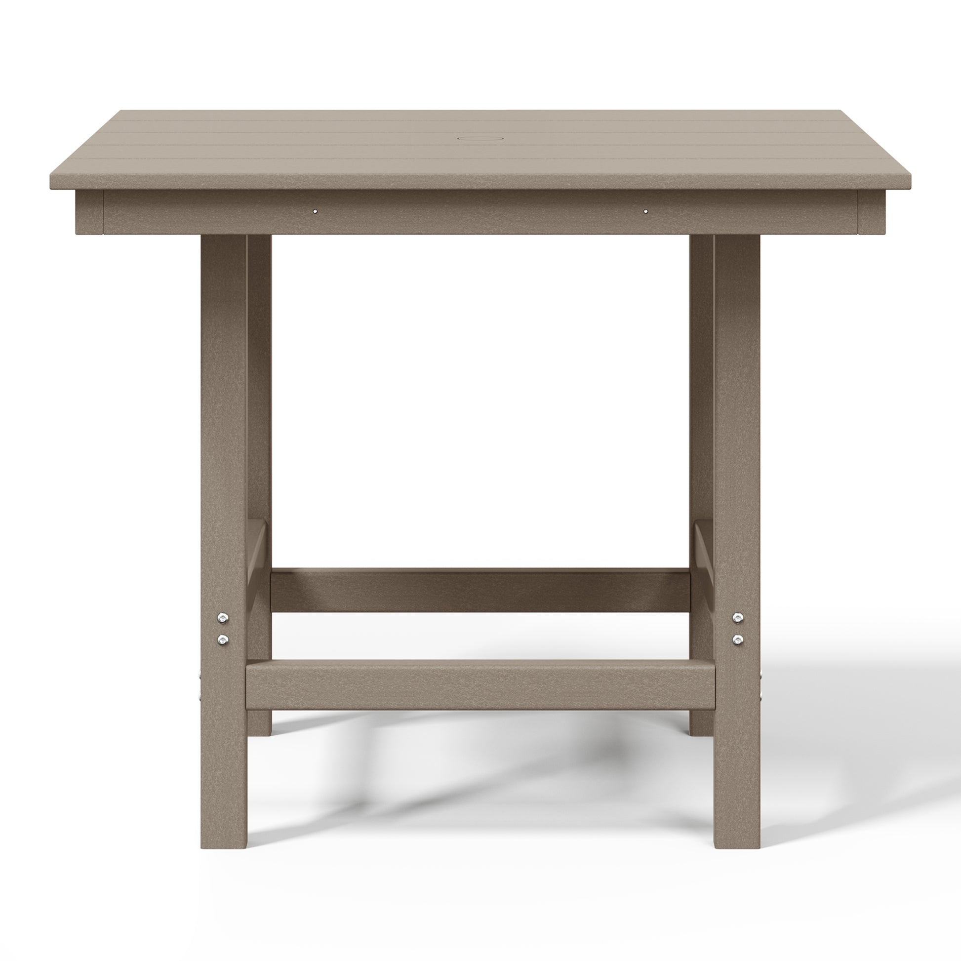 Gather around for a delicious meal and create happy memories with your family around this charming 36" Wide Square Patio Dining Table. Crafted from durable all-weather HDPE material, it is fade- and UV-resistant, making it the ideal choice for outdoor use. Enjoy warm, sunny days without the sun getting in the way, thanks to the table's built-in 1.9" diameter umbrella hole, perfect for adding to your existing patio umbrella. Designed for durability and longevity, the table features a reinforced bottom that reduces wobbling and increases overall stability, along with stainless steel plates running along the side skirts to help prevent warping.