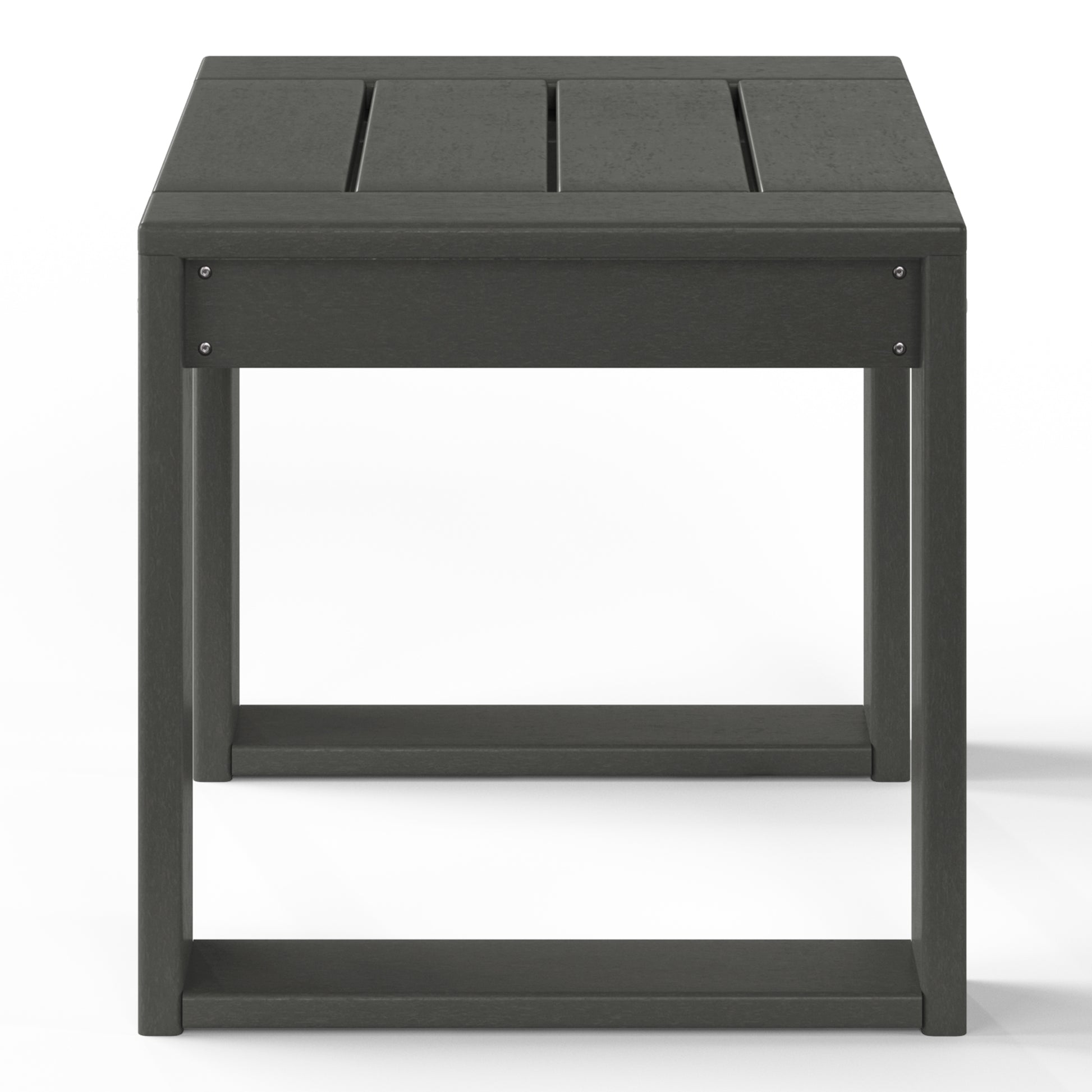 Discover the perfect blend of modern design and lasting durability with our Modern HDPE patio side table—a sleek and practical accent for your outdoor living area. Crafted from durable, all-weather HDPE material, its UV and fade-resistant properties provide ideal protection against the elements. Designed for durability, stability, and longevity, it features thick legs that minimize wobbling, robust HDPE slats, and a U-shaped leg frame that reinforces the tabletop and evenly distributes weight. This 17-inch wide patio side table is perfect for holding drinks and snacks while you relax with family and enjoy quality time together.