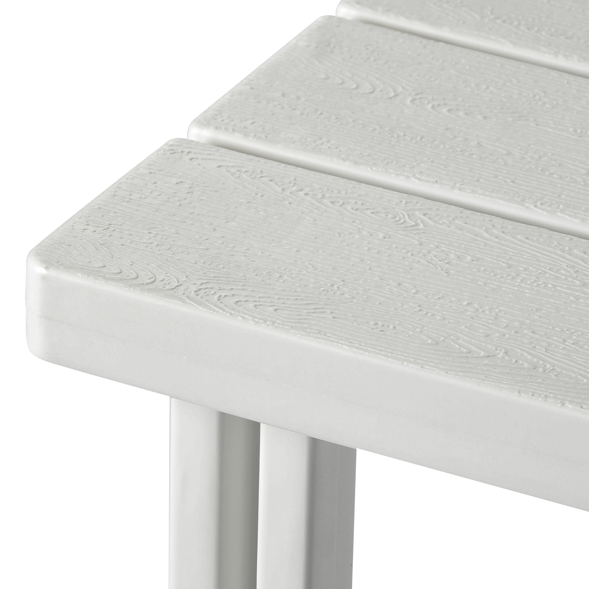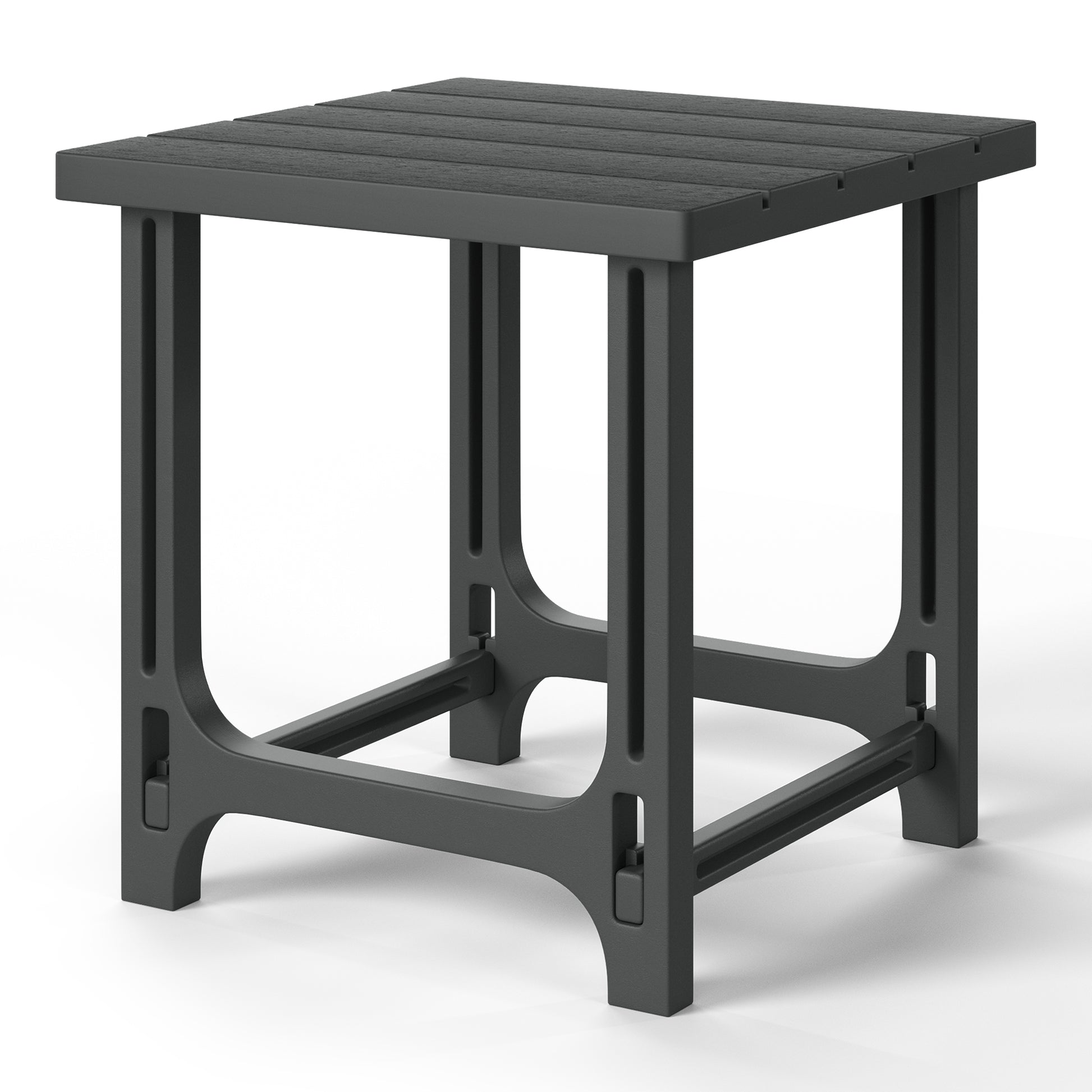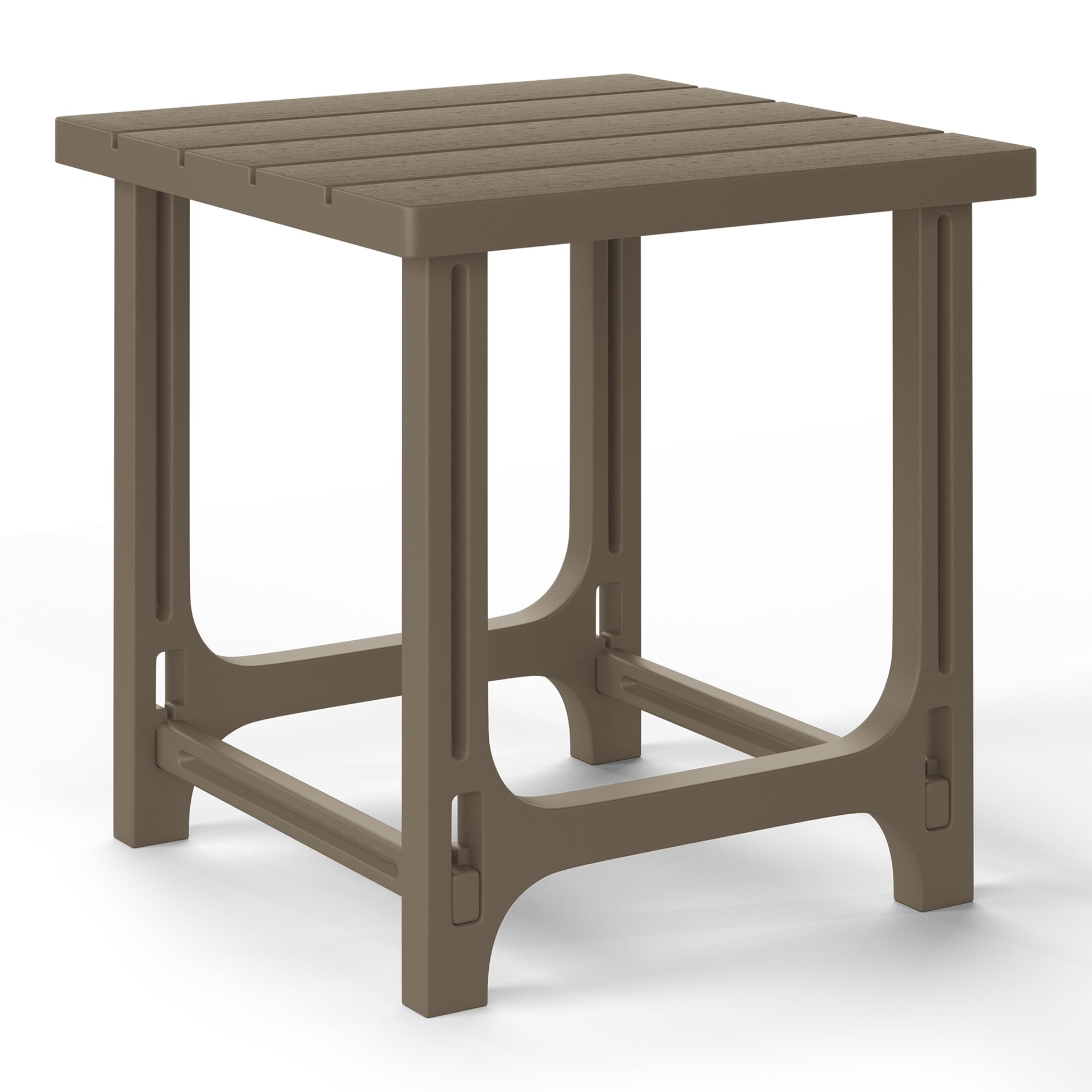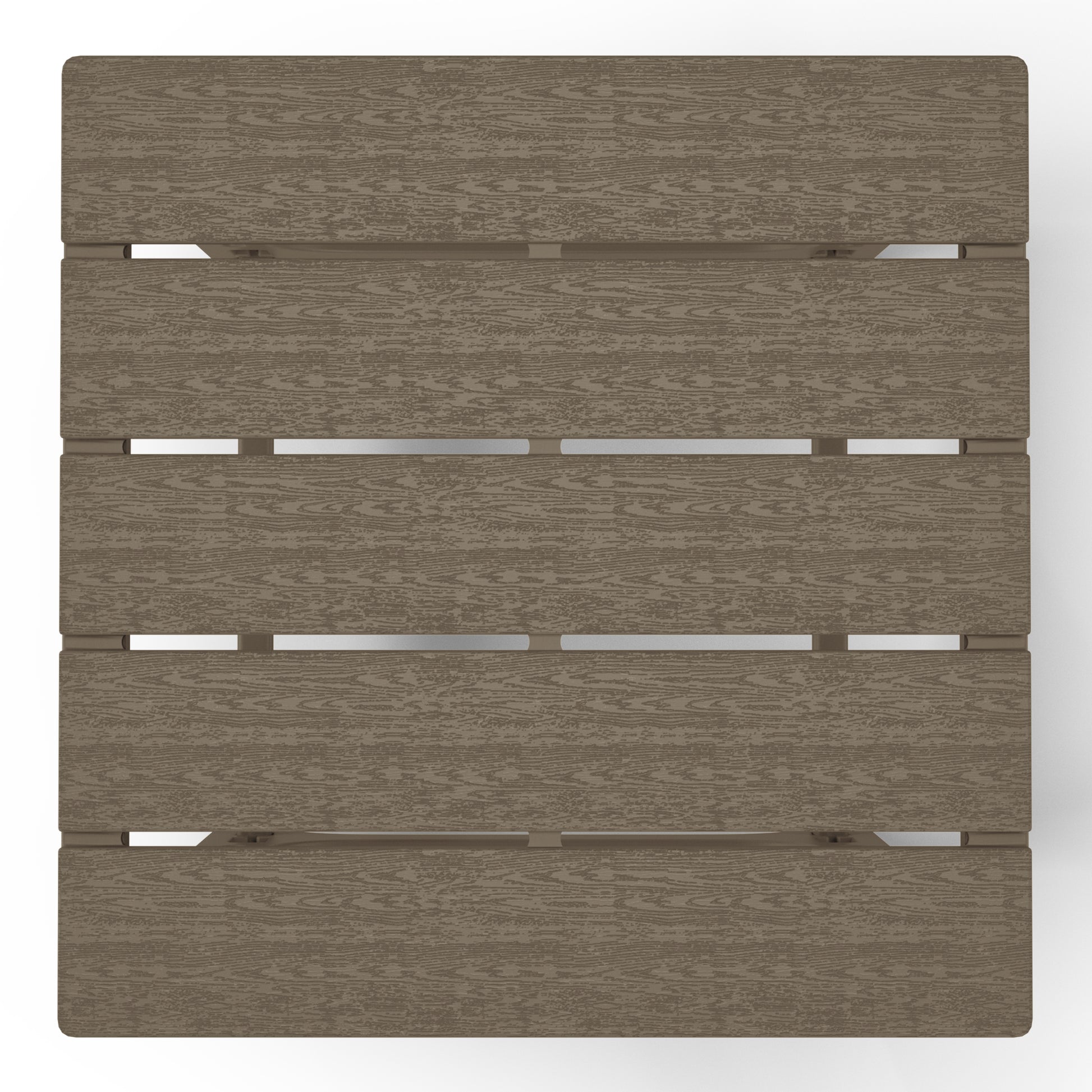 Elevate your outdoor living space with our versatile HDPE Patio Side Table. Its innovative, hardware-free snap-and-lock assembly ensures an effortless, tool-free setup and simple storage – no stripped screws or lost parts. Crafted from premium, non-toxic HDPE with a beautiful wood-like texture and pattern, this outdoor end table is safe for children & pets, offering superior UV, fade, & weather resistance for enduring beauty. Thoughtfully designed with rounded edges for safety and a slatted tabletop for quick drainage, it's always ready. Plus, its lightweight & portable design makes this patio side table seamlessly blend classic style with modern convenience for your deck, patio, or poolside.
