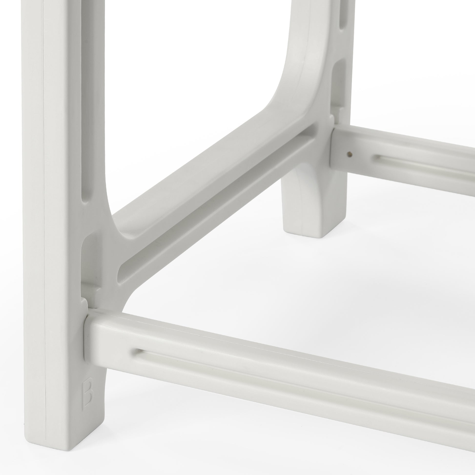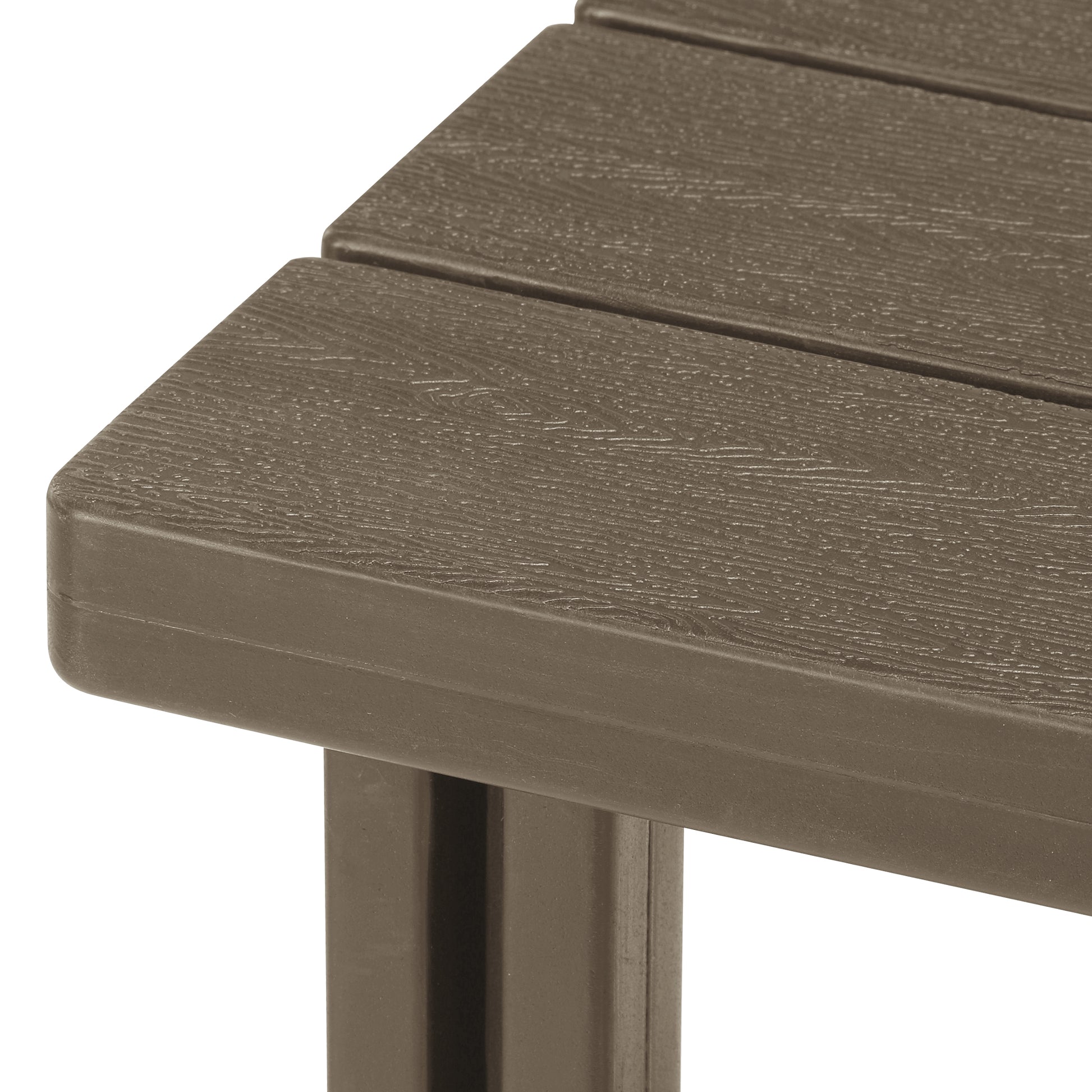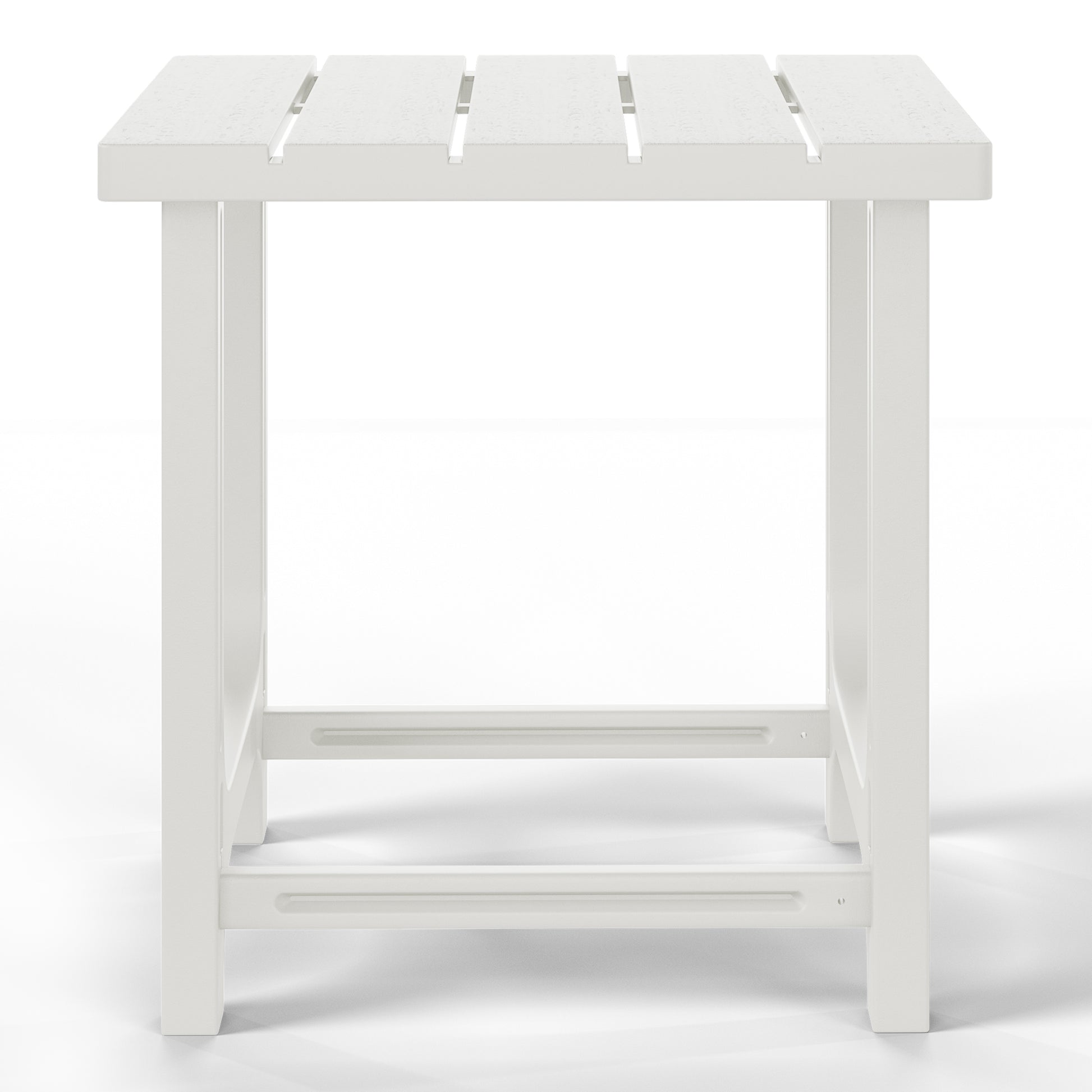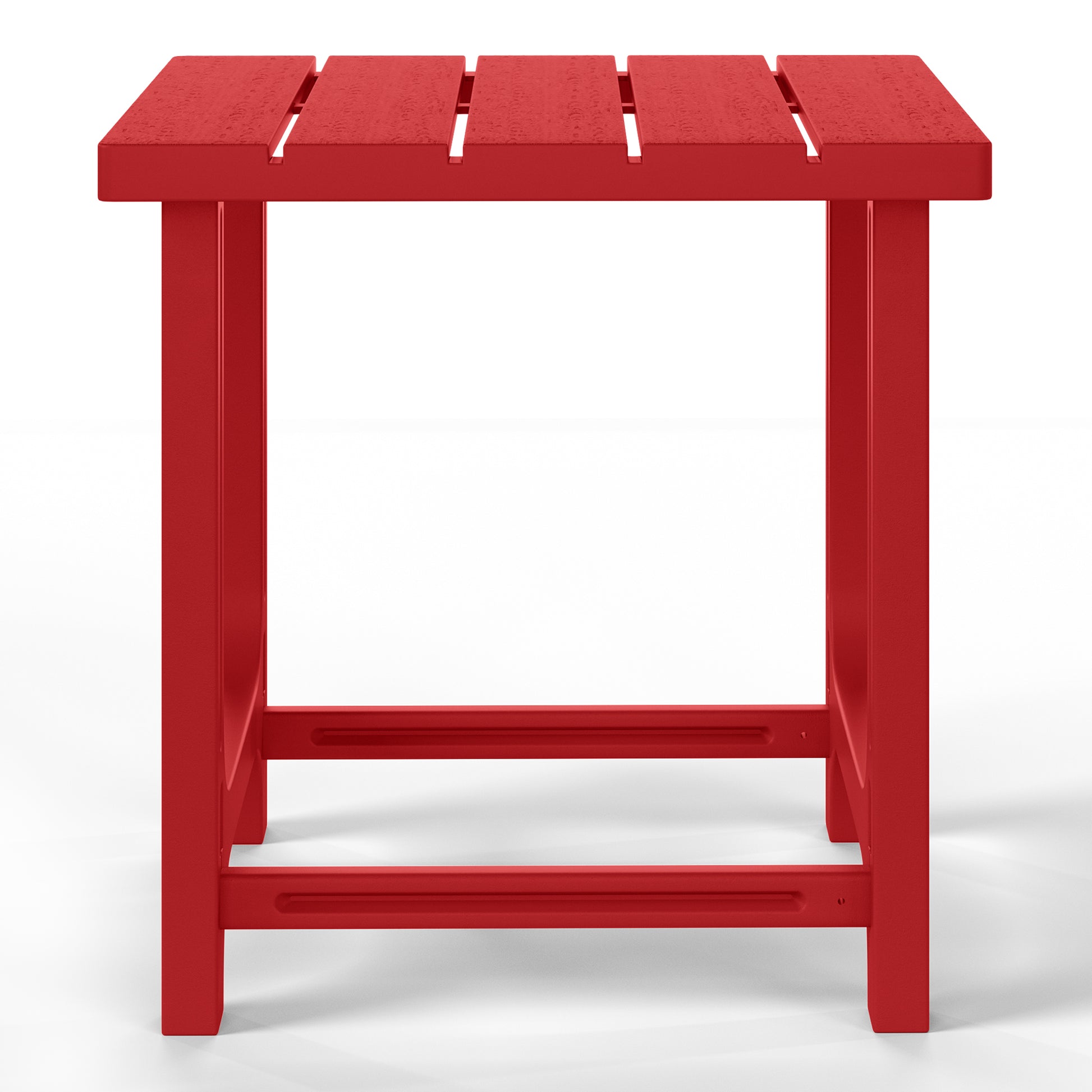 Elevate your outdoor living space with our versatile HDPE Patio Side Table. Its innovative, hardware-free snap-and-lock assembly ensures an effortless, tool-free setup and simple storage – no stripped screws or lost parts. Crafted from premium, non-toxic HDPE with a beautiful wood-like texture and pattern, this outdoor end table is safe for children & pets, offering superior UV, fade, & weather resistance for enduring beauty. Thoughtfully designed with rounded edges for safety and a slatted tabletop for quick drainage, it's always ready. Plus, its lightweight & portable design makes this patio side table seamlessly blend classic style with modern convenience for your deck, patio, or poolside.